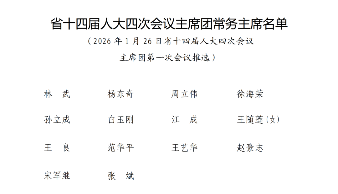 山东省十四届人大四次会议主席团常务主席名单