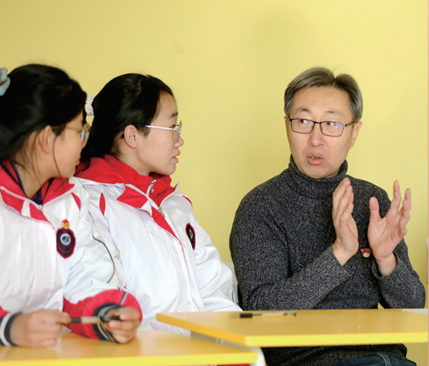曹锦鹏与青岛工贸职业学校的孩子们交流。韩星 摄