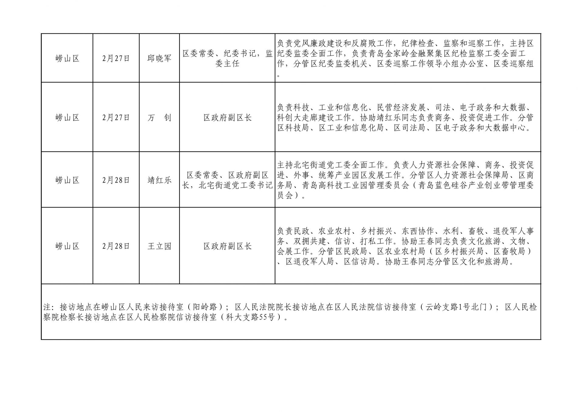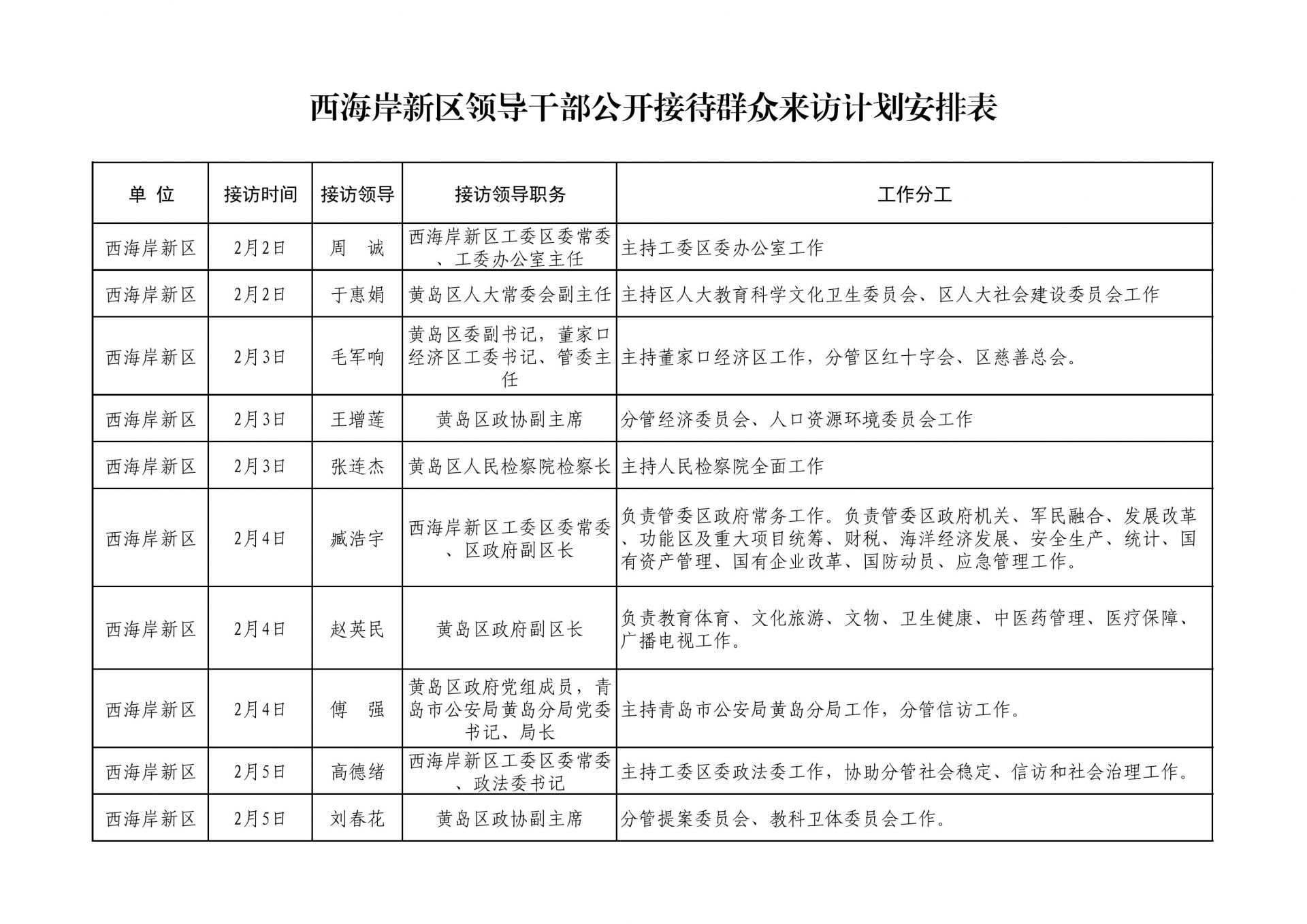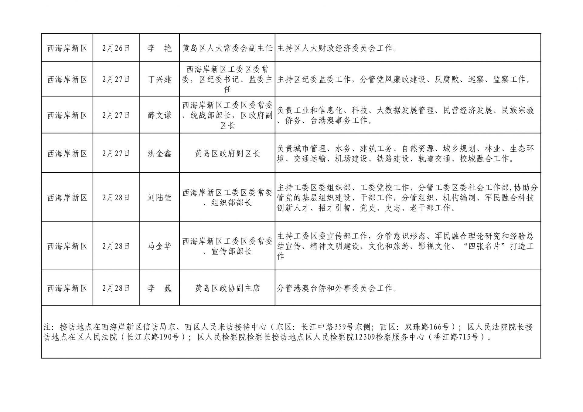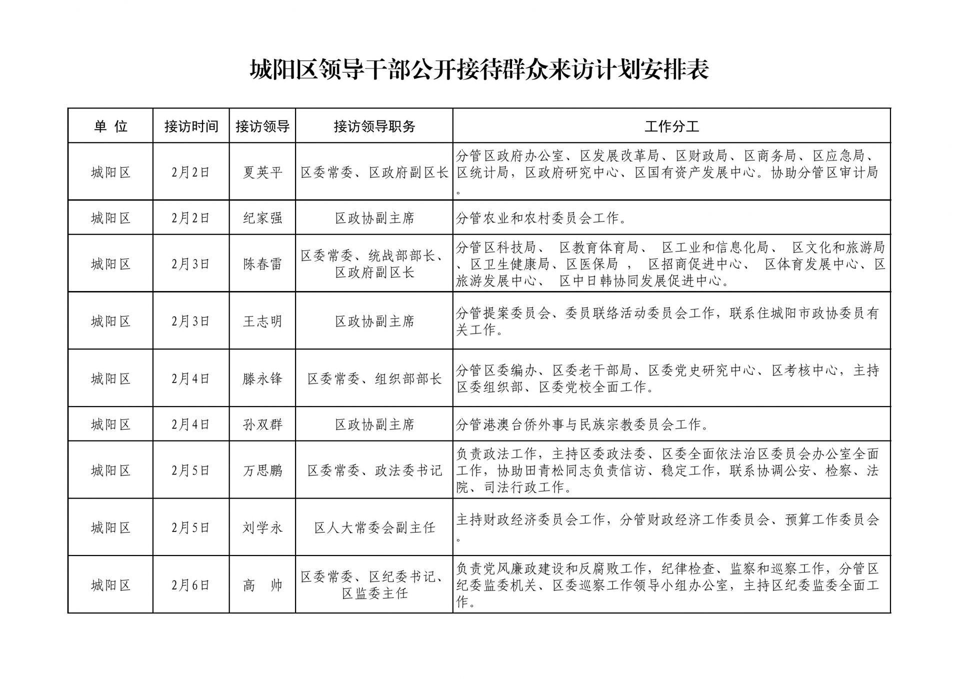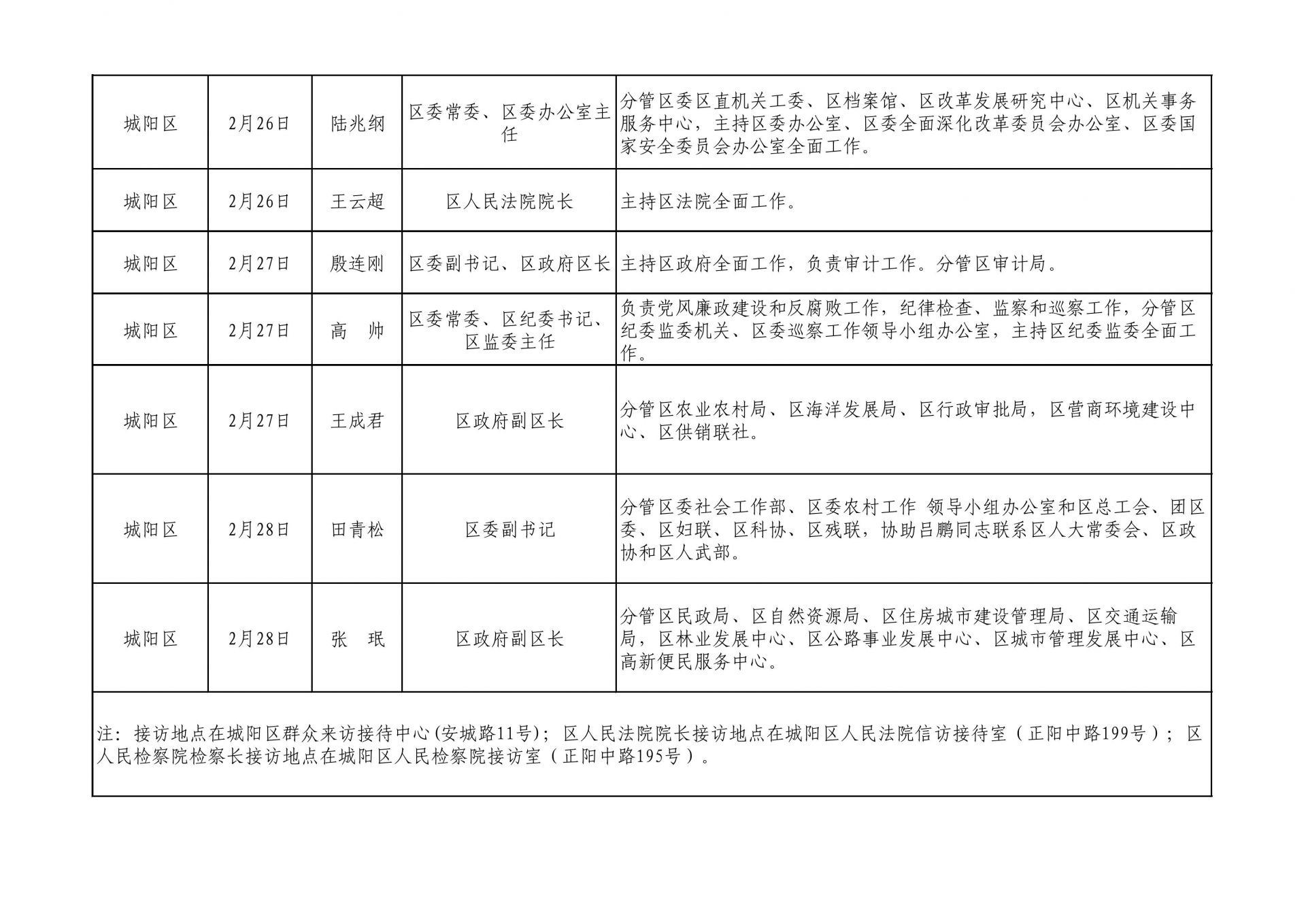 2026年2月份青岛各区市领导干部公开接访计划安排表发布