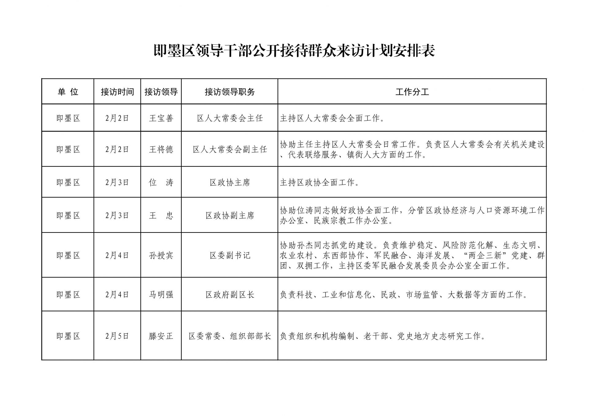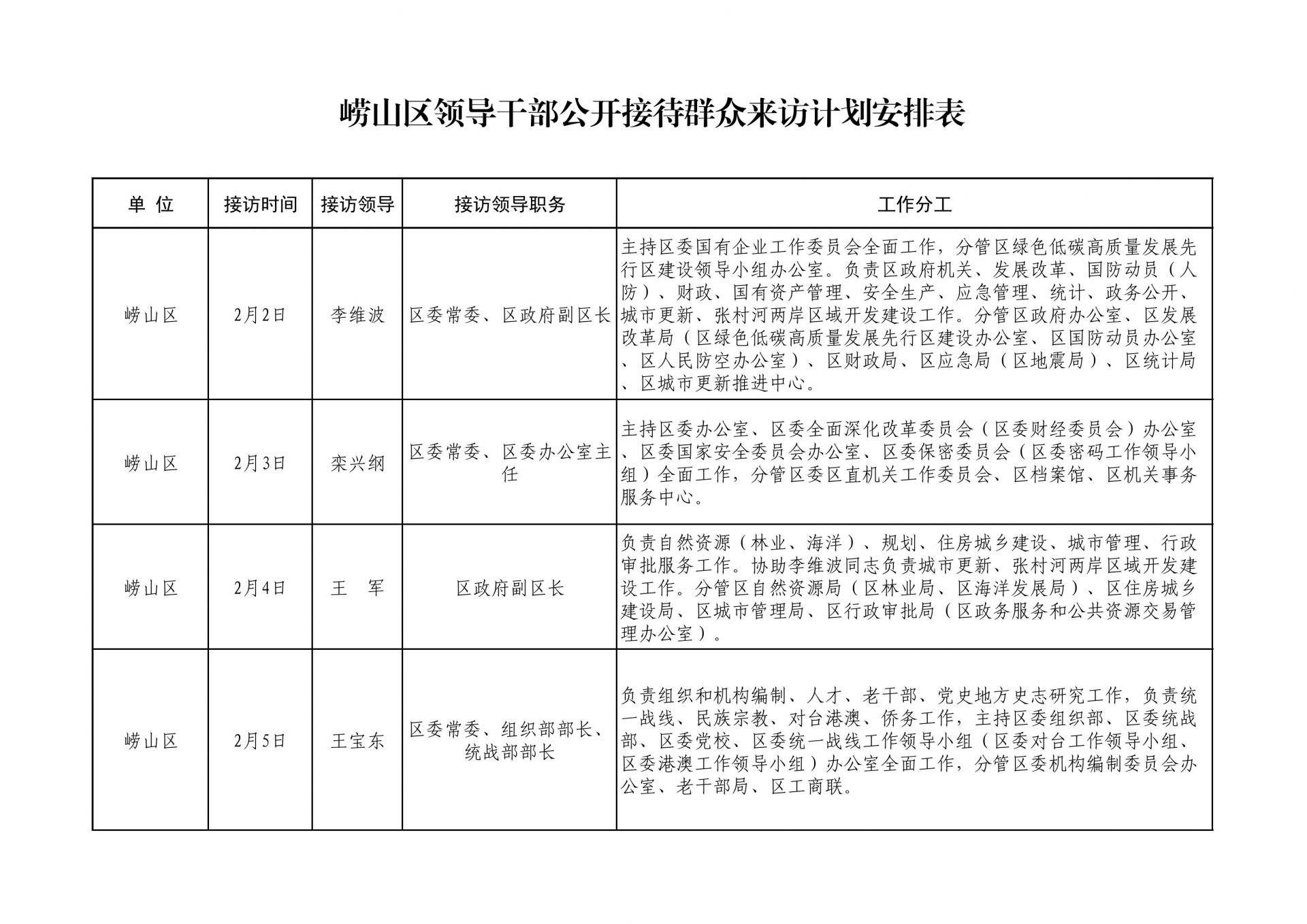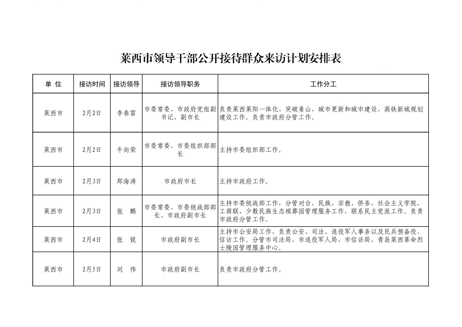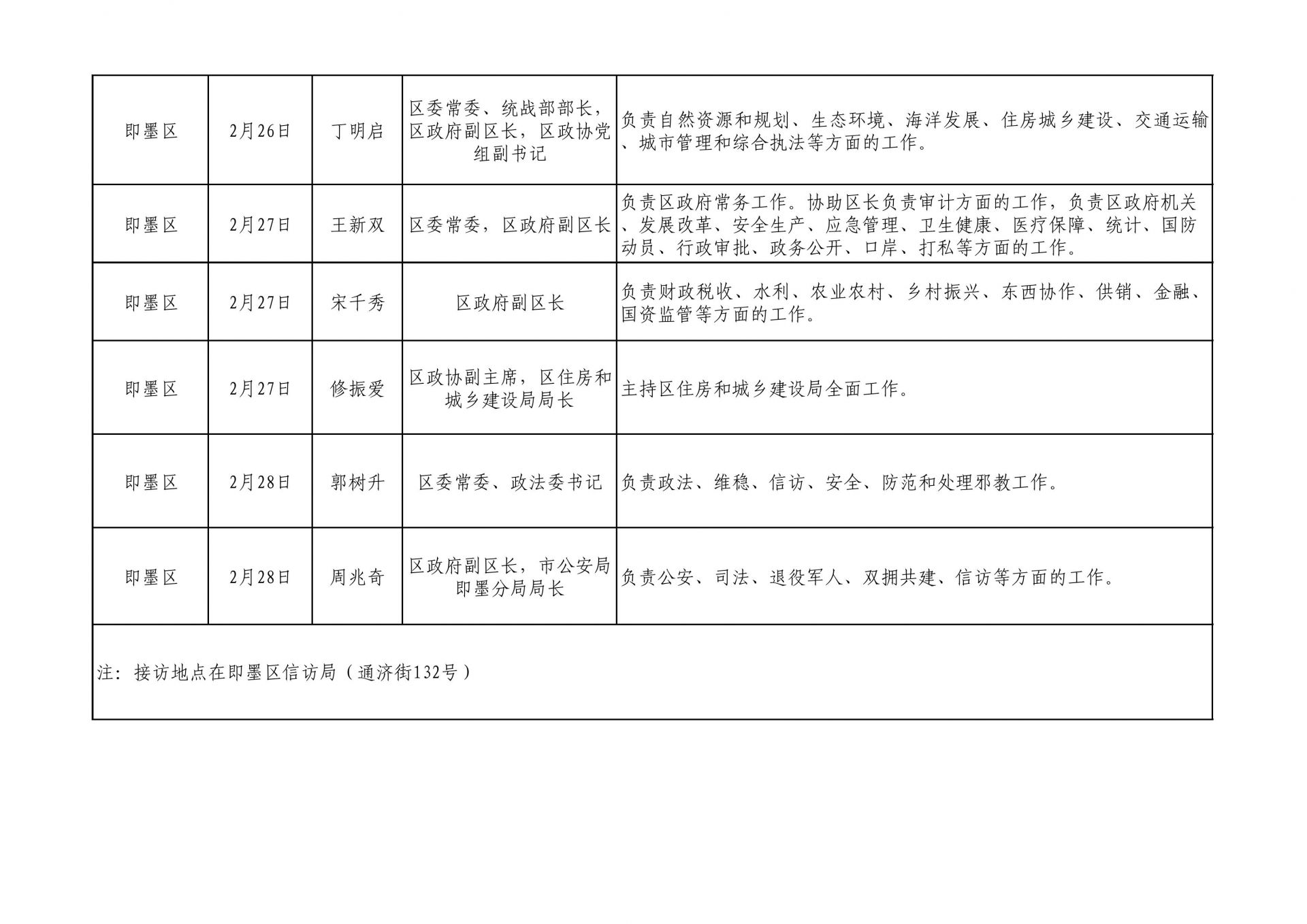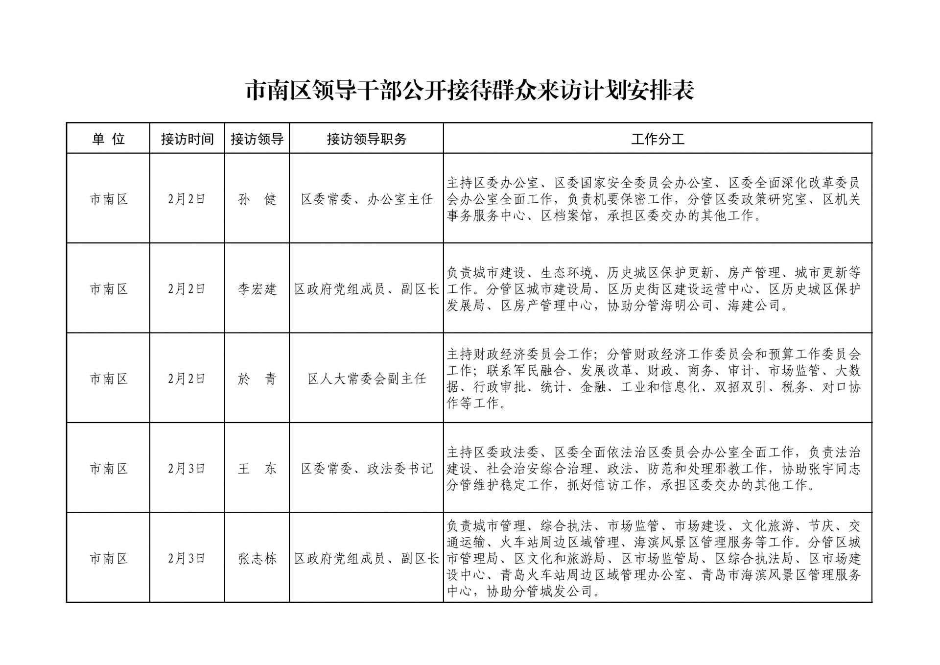 2026年2月份青岛各区市领导干部公开接访计划安排表发布
