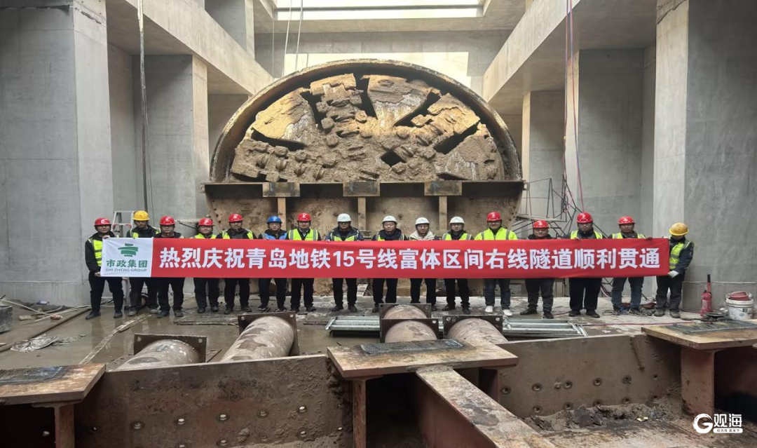 随着“市政铁军9号”盾构机刀盘精准破壁而出,地铁15号线富民路站至体育馆站盾构区间右线顺利贯通,标志着该区间实现双线贯通。(青岛日报/观海新闻记者 周建亮)