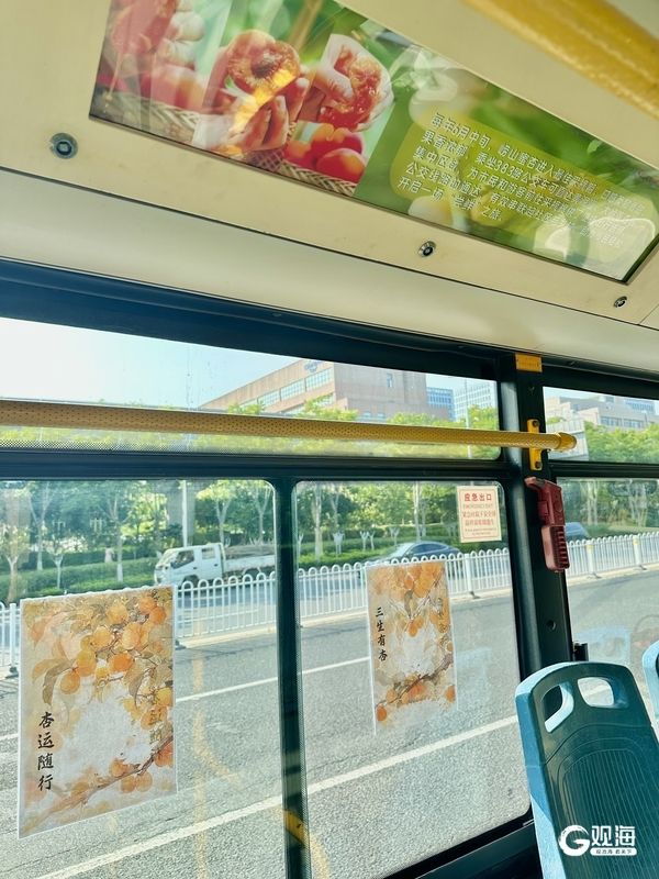 春日崂山,樱杏芬芳。383路敏锐地捕捉到市民近郊采摘的出游热情,相继推出“‘樱’你而来”与“乘‘杏’而来,尽‘‘杏’’而归”主题车厢。车厢内,不再是千篇一律的广告,取而代之的是手绘风格的沿线樱桃园、杏园采摘攻略图。图上清晰地标注了最佳采摘站点、公交接驳小贴士等信息。灯箱片、手拉宝上点缀着樱花与杏子的剪影,乘客仿佛未到果园,已闻果香。这趟“开往春天的公交”,精准地将城市客流引向了乡村的田间地头,成为助农惠农的“直通车”。