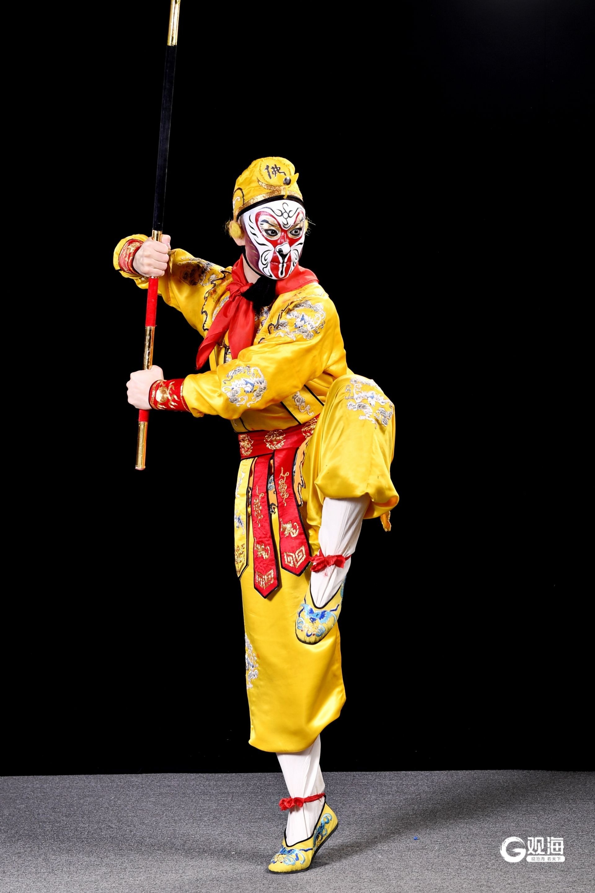 “‘武丑’,只是写的是‘丑’字,但是我们不是那么认为,我们的表演是带‘美’的,让观众从舞台上看到和理解美学。”时增帅说道。在青岛市京剧院剧场舞台中央,他为记者展示这些武丑的基本功和“美猴王”的拿手好戏时,不再是采访时不善言辞的大男孩,此时,他的一颦一笑、一个疾步、一个跳跃顿时像换了一个人,那是京剧艺术穿越时间、根系传统的生命力所在——它从来不是轻盈的跳跃,而是一次次深蹲后的、最有力量的起飞。