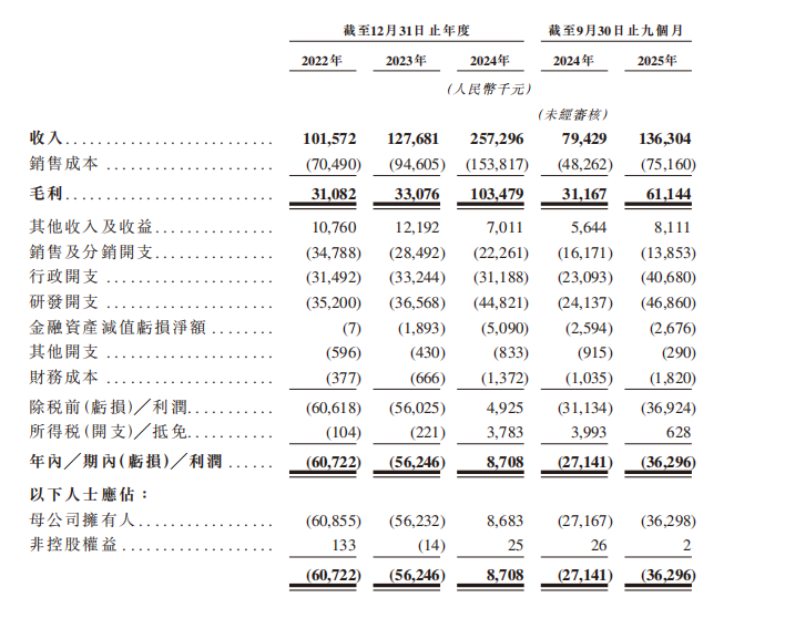 公开资料显示,极视角研发投入长期处于高位。2022年至2024年,公司研发开支占各期经营成本的总额达34.7%、37.2%、45.6%;2025年前三季度占比接近半成,达46.2%。