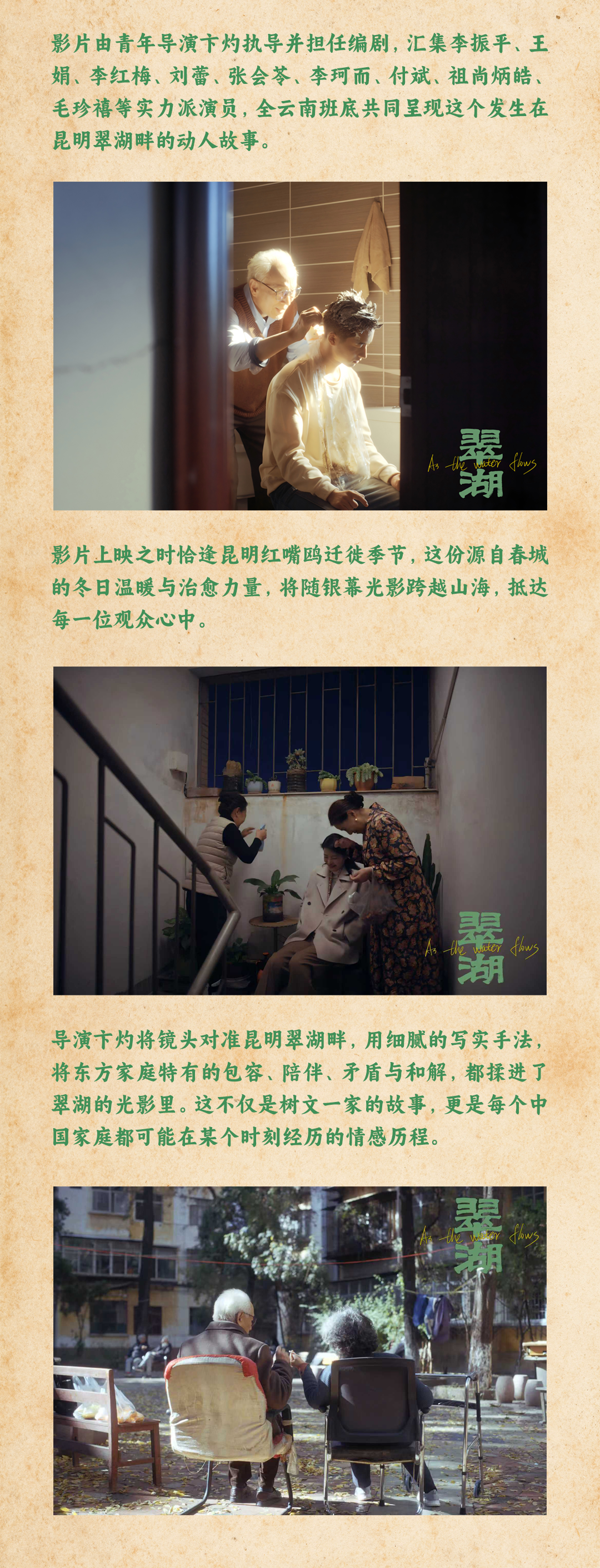 《翠湖》是一部聚焦家庭往事与和解的温情剧情片,镜头对准昆明翠湖畔一个普通家庭,细腻展现了代际之间的情感褶皱。对于喜欢静心品味生活流电影、愿意与主创深入交流的影迷来说,这是一个难得的机会。感兴趣的观众可以关注具体活动公告,获取购票及活动详情。