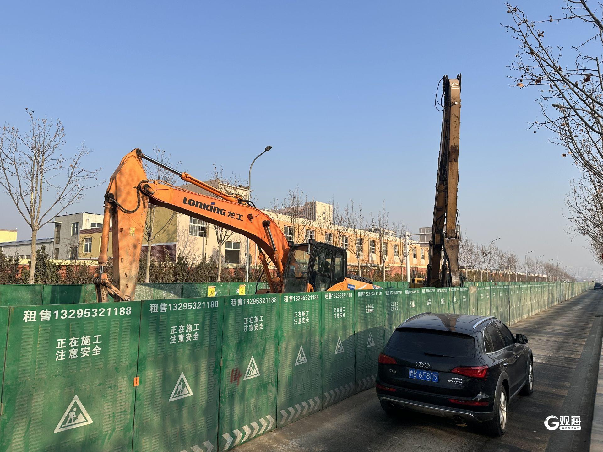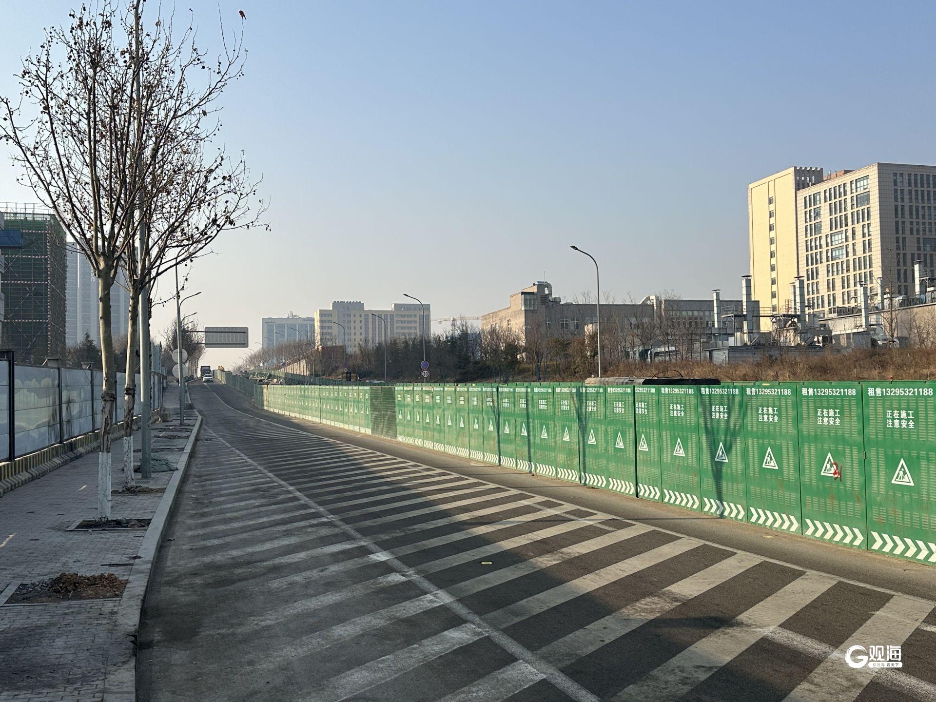 记者了解到,该路段施工的项目名称为——青岛市地铁5号线闫家山主变电所外电源,建设单位为青岛地铁集团有限公司,施工单位为青岛唐墨建设工程有限公司。现场的占路信息公示牌显示,原批准占路时间为2025年9月10日至2025年11月28日,后经同意延期至2026年1月20日。