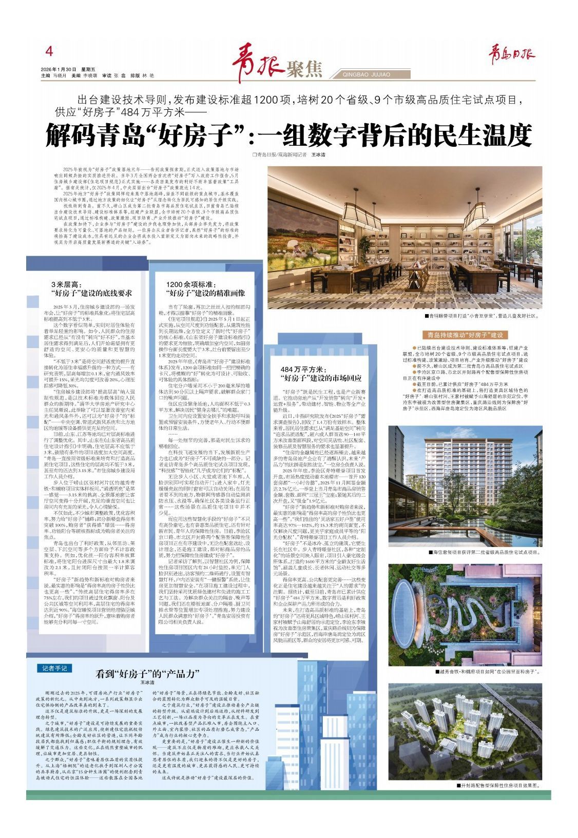得房率更高、公共配套更完善……这些变化正是住宅建设越来越关注于“人的需求”的注脚。据统计,截至目前,青岛市已累计供应“好房子”484万平方米,数字背后是利好政策和企业深耕产品力所形成的合力。