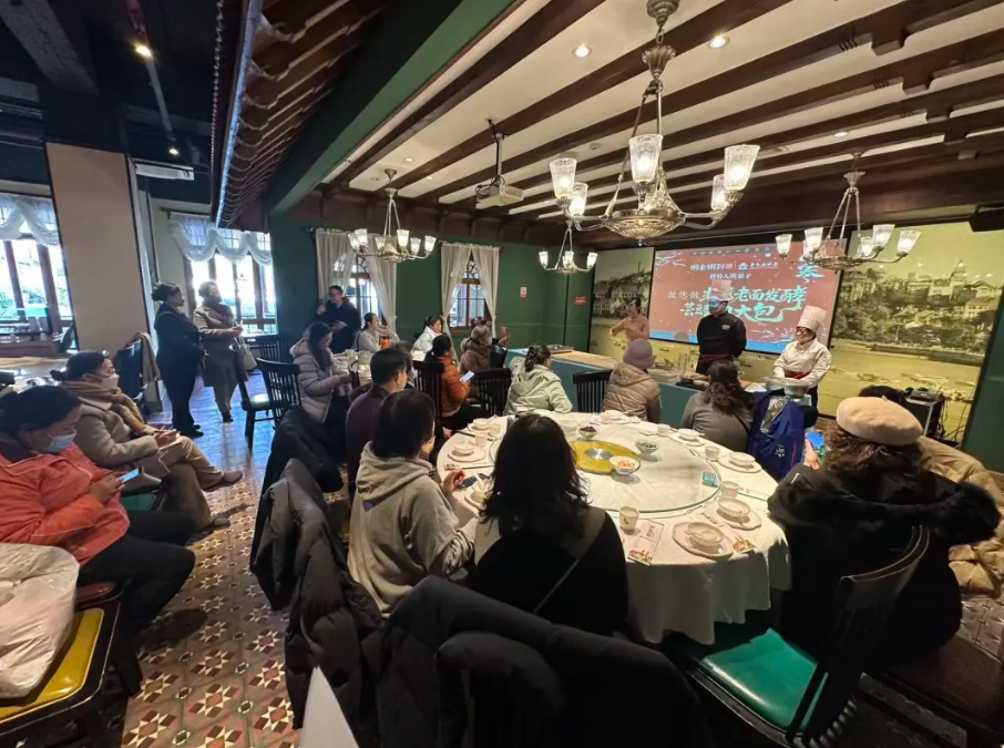 1月5日,文化馆邀请粥全粥到非遗传承人李梦飞携弟子,在粥全粥到延吉路店为大家演示并示范非遗老面发酵芸豆酱肉大包的制作全过程。大家近距离学习了老面发酵、手工揉制、酱肉调制等传统工艺,亲手体验包制过程,并现场品尝了新鲜出锅的手工大包。
