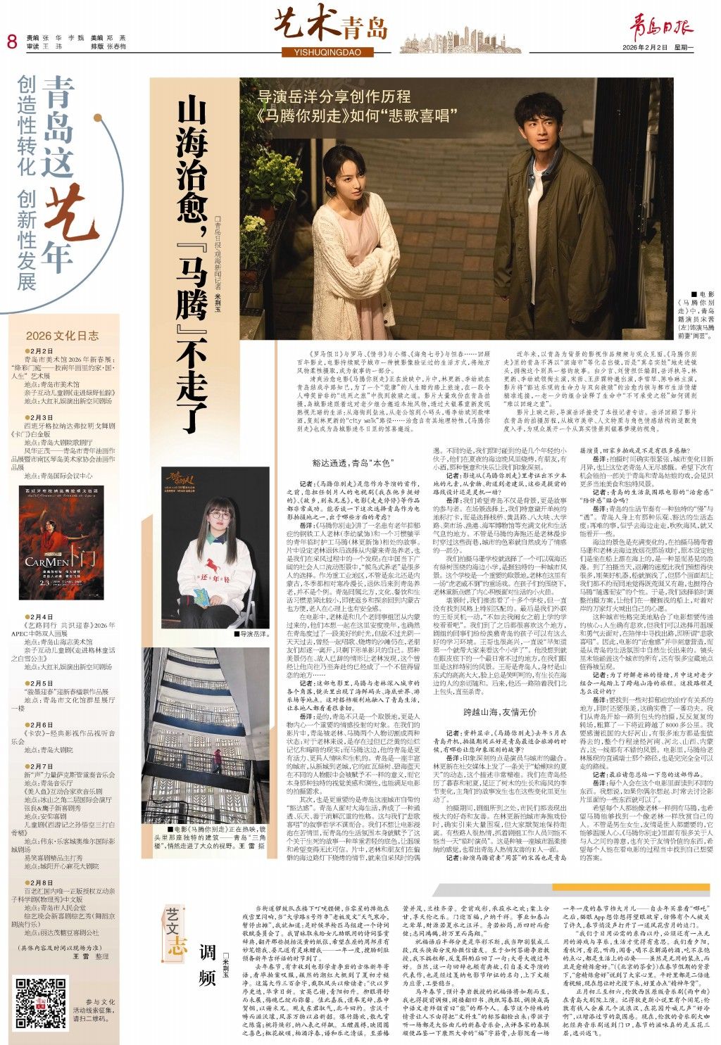影片上映之际,导演岳洋接受了青岛日报/观海新闻记者专访。岳洋回顾了影片在青岛的拍摄历程,从城市美学、人文特质与角色情感结构的适配角度入手,为观众展开一个从真实情景到银幕梦境的视角。