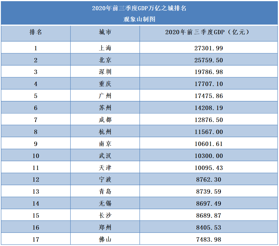 到今年第三季度,排名再次大调整:宁波重回第12,青岛排名上升一个位次至第13,无锡下滑一个位次至第14,长沙下滑三个位次至第15,郑州排名第16保持不变。