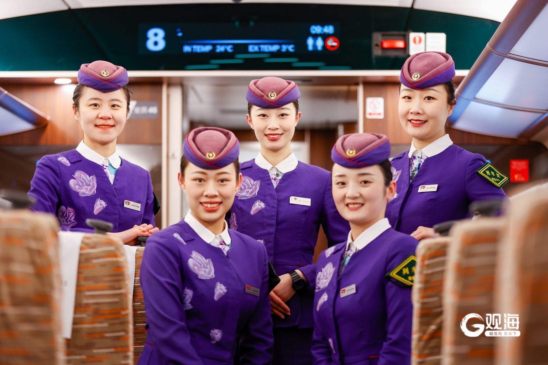随着北京动车队“金花”的迭代发展,如今已从第一代“金花”发展到第四代。每一代“金花”成员,都有自己专属亮点和服务秘诀。2024年11月15日,在青京列车开行75周年纪念活动上,第四代“金花”的5位姑娘走到了一起:王婷性格开朗,于红艳热情温暖,吕玲玉业务精湛,王婷婷多才多艺,王艺凡心思细腻。