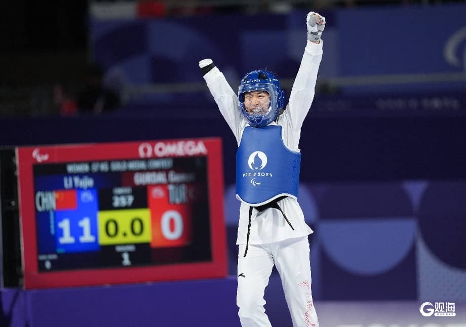 2001年出生的李羽洁,童年时期因意外失去右手,面部也留下永久伤疤,但命运的重击从未熄灭她对体育的热爱。2017年,16岁的李羽洁进入青岛市残疾人体育中心,正式开启跆拳道专业训练。凭借“连续进攻速度快、前腿阻击出色”的技术优势,她在赛场上迅速崭露头角:2019年首次征战国际赛场,便在土耳其残疾人跆拳道世界锦标赛女子K44级58公斤级比赛中夺冠,一战成名;2021年东京残奥会上,她夺得女子K44级58公斤级铜牌,为中国实现残奥会跆拳道奖牌“零的突破”;2024年巴黎残奥会,李羽洁在女子K44级57公斤级决赛中以11:0的绝对优势完胜土耳其名将古达尔,斩获中国首枚残奥会跆拳道金牌,同时创下青岛、山东运动员在该届残奥会上的首金纪录。