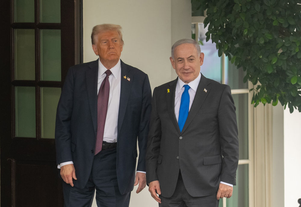 2025年9月29日,在美国首都华盛顿白宫,美国总统特朗普(左)迎接到访的以色列总理内塔尼亚胡。新华社记者胡友松摄
