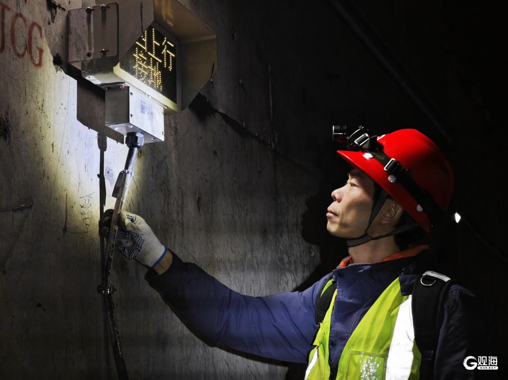 接触轨检修人员正在青岛地铁红岛火车站,排查线缆破损隐患。