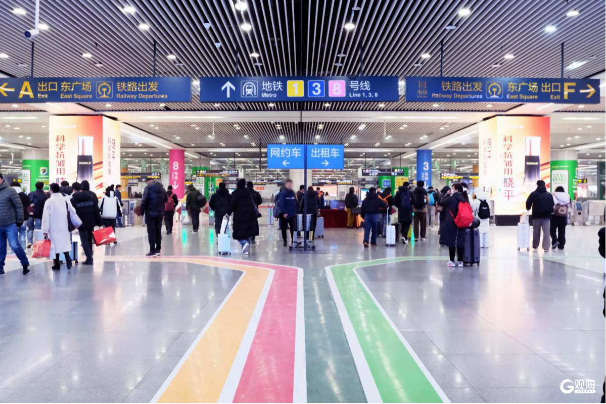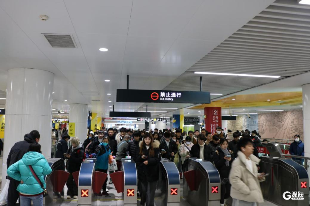青岛地铁台东站站厅熙熙攘攘,涌动的人潮中尽是归乡的期待与团聚的温暖。