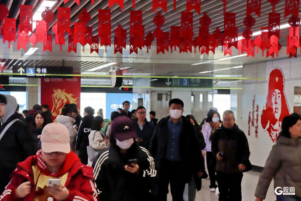 青岛地铁李村站,拉花装点出喜庆年味,处处洋溢着节日的暖意。人来人往中,每一程,都是回家的方向。