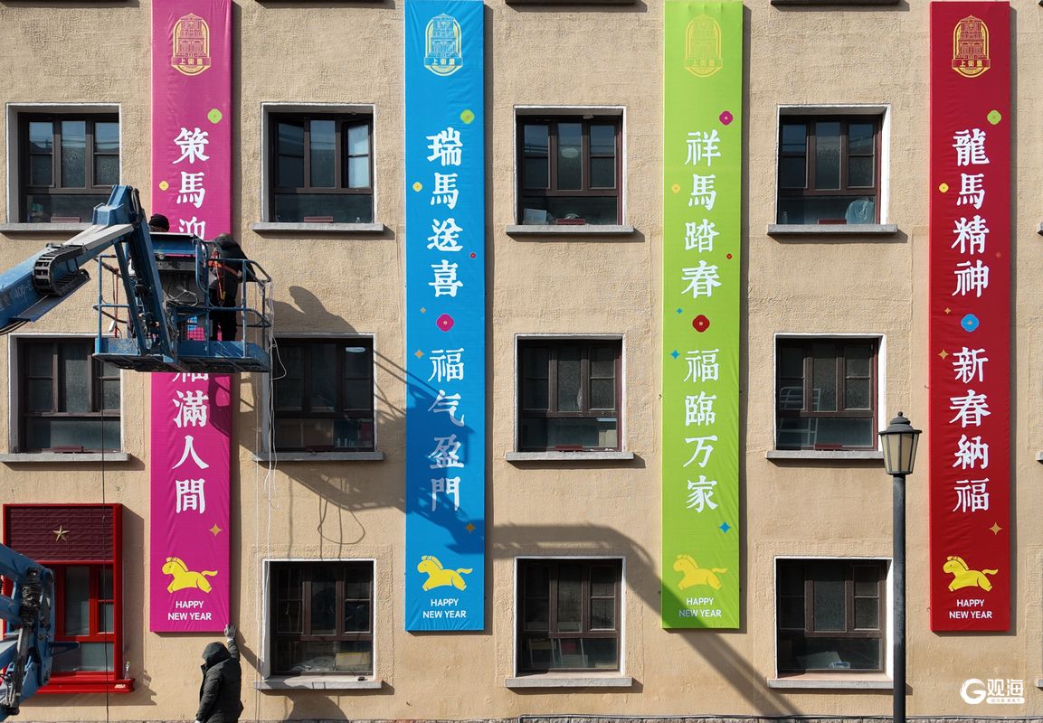 青岛日报社/观海新闻2月5日讯 新春的脚步临近,青岛历史城区年味渐浓,焕新亮相的装饰为老城区注入别样活力。水龙池子广场上,马年主题装置醒目亮眼,吸引市民提前“打卡”留念;老街上,马年主题条幅色彩斑斓,与成串的红灯笼交相辉映,将老建筑勾勒得喜庆温馨。行走其间,传统年味与历史底蕴有机交融,不仅让市民提前感受到新春的喜悦,也为历史城区增添了浓浓的烟火气。