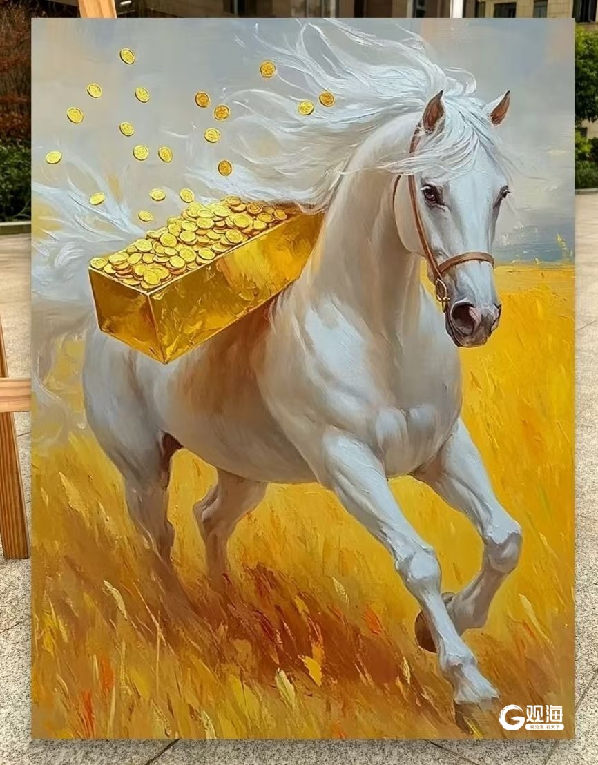 “今年是马年,我就想多画几幅与马有关的画。”孙淑波指着两幅画向记者介绍道,左边的画布上,晨光熹微,海天相接处染着金红与淡紫,波涛被朝霞镶上碎金般的边缘,画面中心,是一匹通体雪白的骏马,正破开海风浪花奔腾而来,它鬃毛飞扬,肌肉线条在光线下充满动感张力。孙淑波用一支细小的画笔,一点点勾勒马眼中的高光,这也是关键的点睛之笔。右边画布上,则呈现出另一种雄浑史诗感。她在临摹名画《拿破仑翻越阿尔卑斯山》,背景是嶙峋险峻的雪山隘口,风雪弥漫,占据画面中心的拿破仑身披斗篷,骑在一匹前蹄腾空的白色战马上,右臂指向天空。在孙淑波看来,两幅画都诠释着一种勇往直前的精神,画着画着,自己好像也对新一年的生活充满了希望和动力。