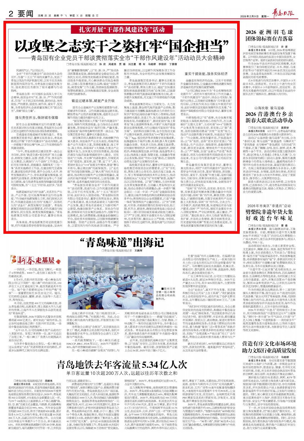 青岛日报2026年2月9日2版