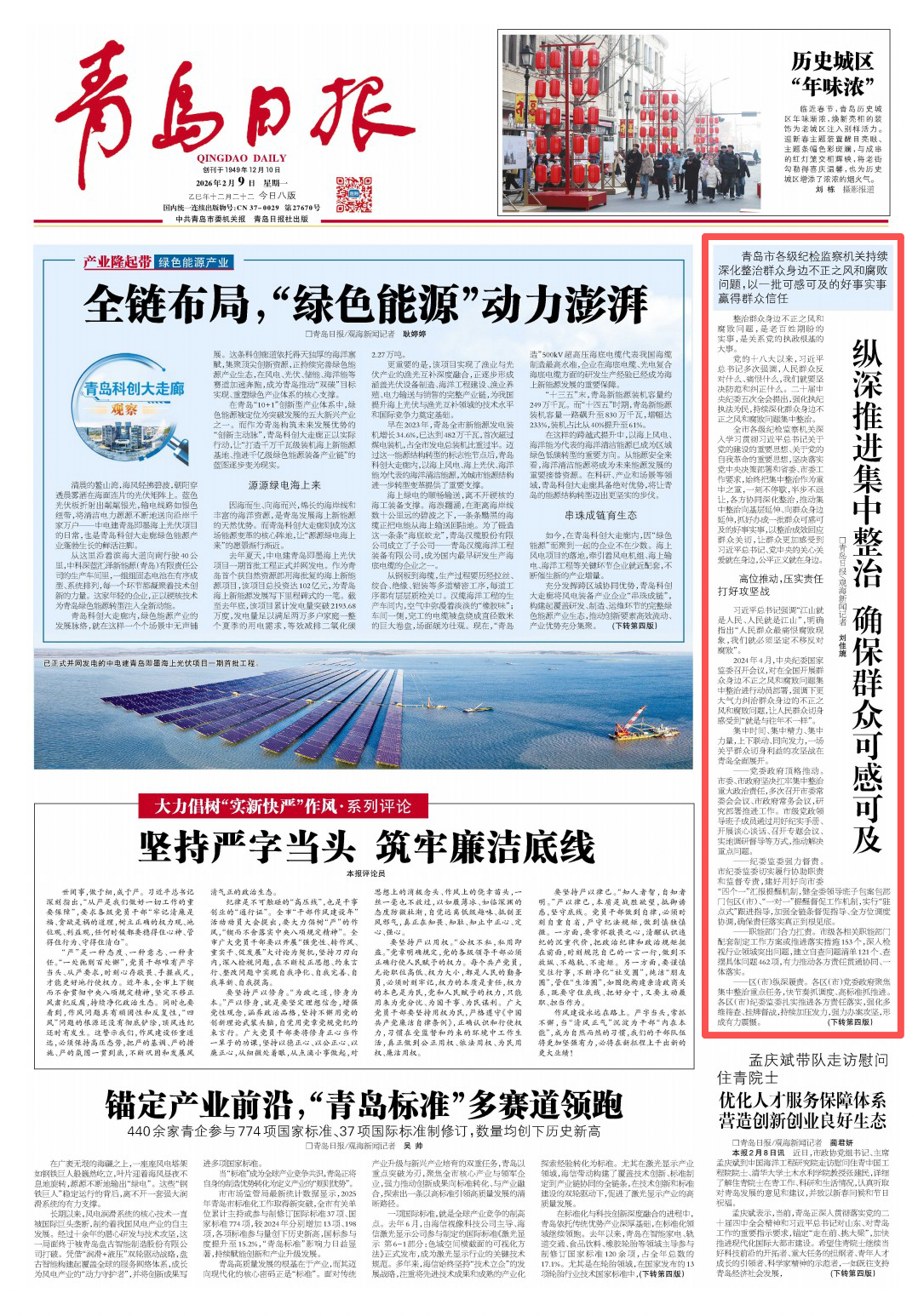 从烟火氤氲的校园食堂,到焕然一新的养老机构……青岛各级纪检监察机关聚焦全国性、省级“7+4”专项整治项目,锚定为人民而战、让群众有感的目标任务,严惩“蝇贪蚁腐”,纠治顽瘴痼疾,推动现代化建设成果更多更公平惠及全体人民。