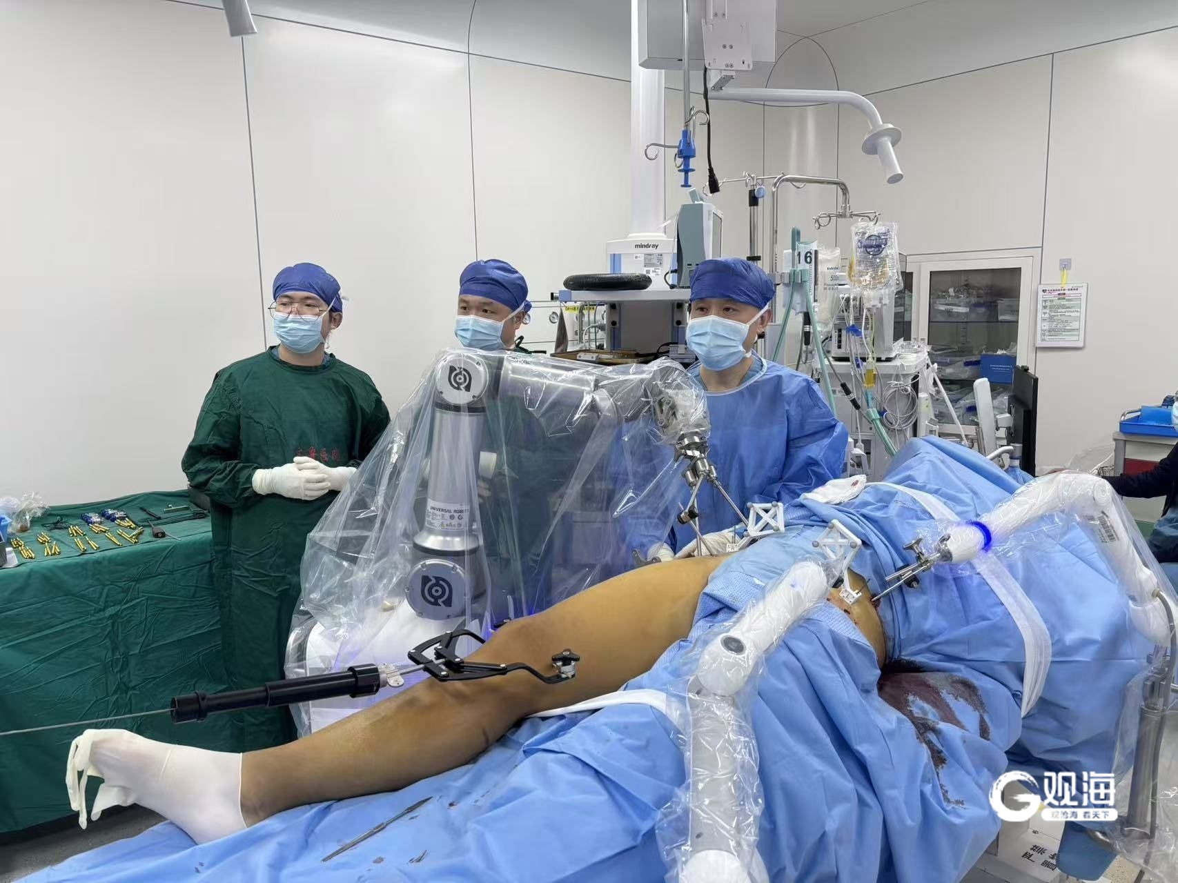 青岛日报社/观海新闻2月9日讯 无影灯下,机械臂缓缓移动,带着毫米级的精准与稳定。主刀医生根据屏幕上显示的三维骨盆模型和实时导航影像轻点鼠标,规划路线,发出指令,一场高难度的复杂骨盆骨折复位内固定手术在智能机器人的辅助下顺利完成。患者身上只留下数个不足1厘米的小切口,术中失血量不足50毫升。这不是科幻场景,而是山东大学齐鲁医院(青岛)手术室内,由我国自主研发的智能化骨折复位机器人日常工作的画面。