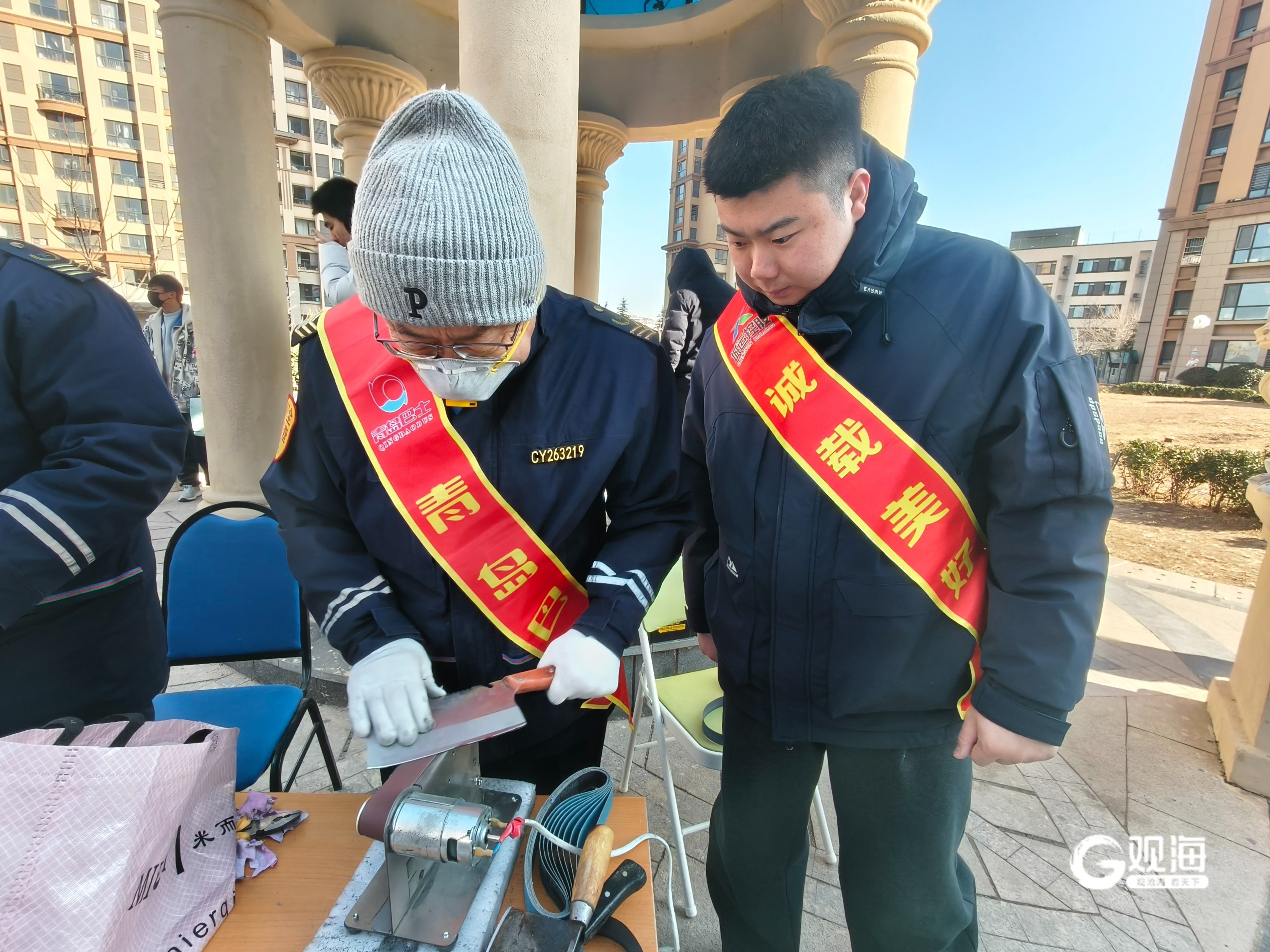 青岛日报社/观海新闻2月9日讯 2月8日,青岛康太源尚誉小区中心广场上暖意浓浓,“瑞玛迎新春 邻里共团圆” 迎新春活动热闹启幕。现场不仅有写福字、做手工等趣味活动,还设置了编马扎、磨菜刀、维修小家电等公益志愿服务摊位,青岛城运控股公交集团李沧巴士第二分公司志愿者管恩国、杨绣武父子踊跃参与,以专业的技能和贴心的服务,为社区居民送上新春的美好祝福。