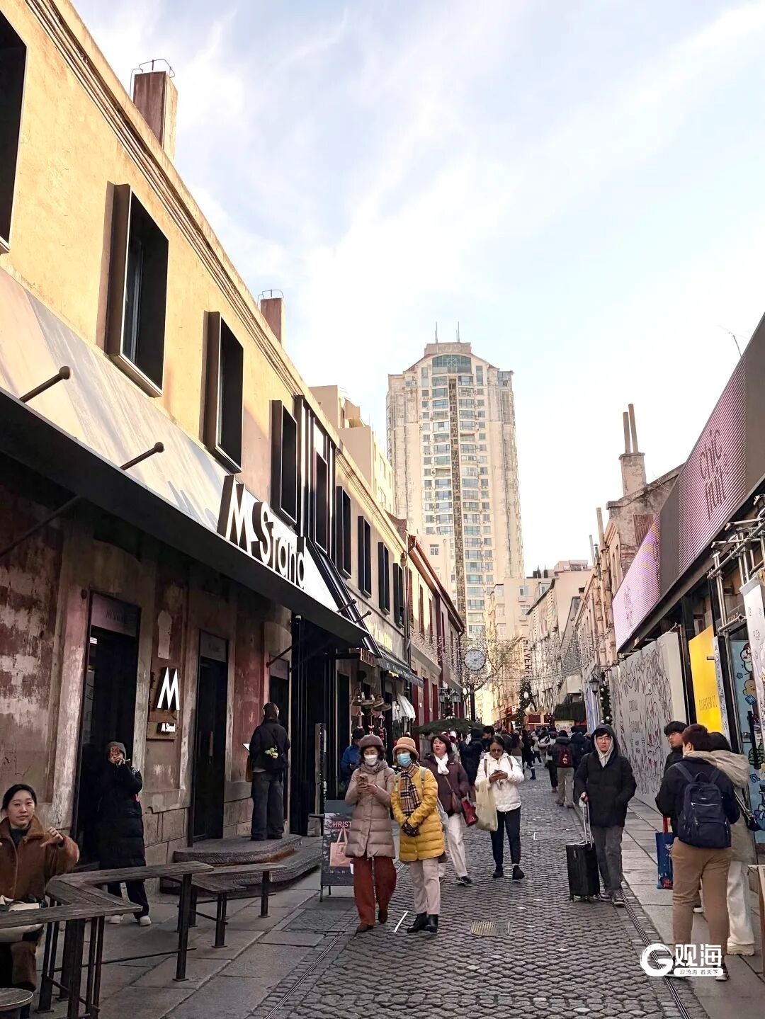 青岛日报社/观海新闻2月9日讯 寒冷挡不住人们的热情。冬日斜阳穿过百年里院的红砖拱廊,在石头路上投下错落光影,潮牌聚集的银鱼巷,正以独特的“网红”魅力吸引一批批年轻身影驻足。
