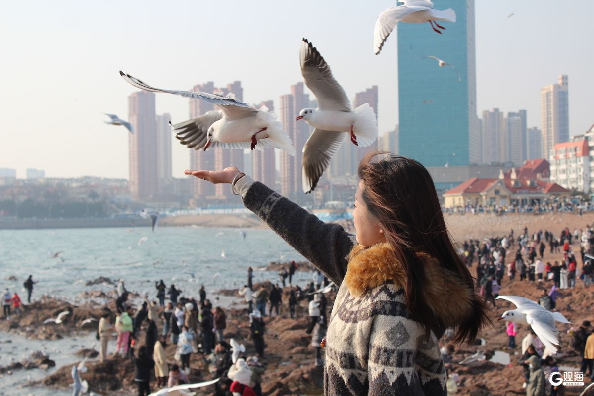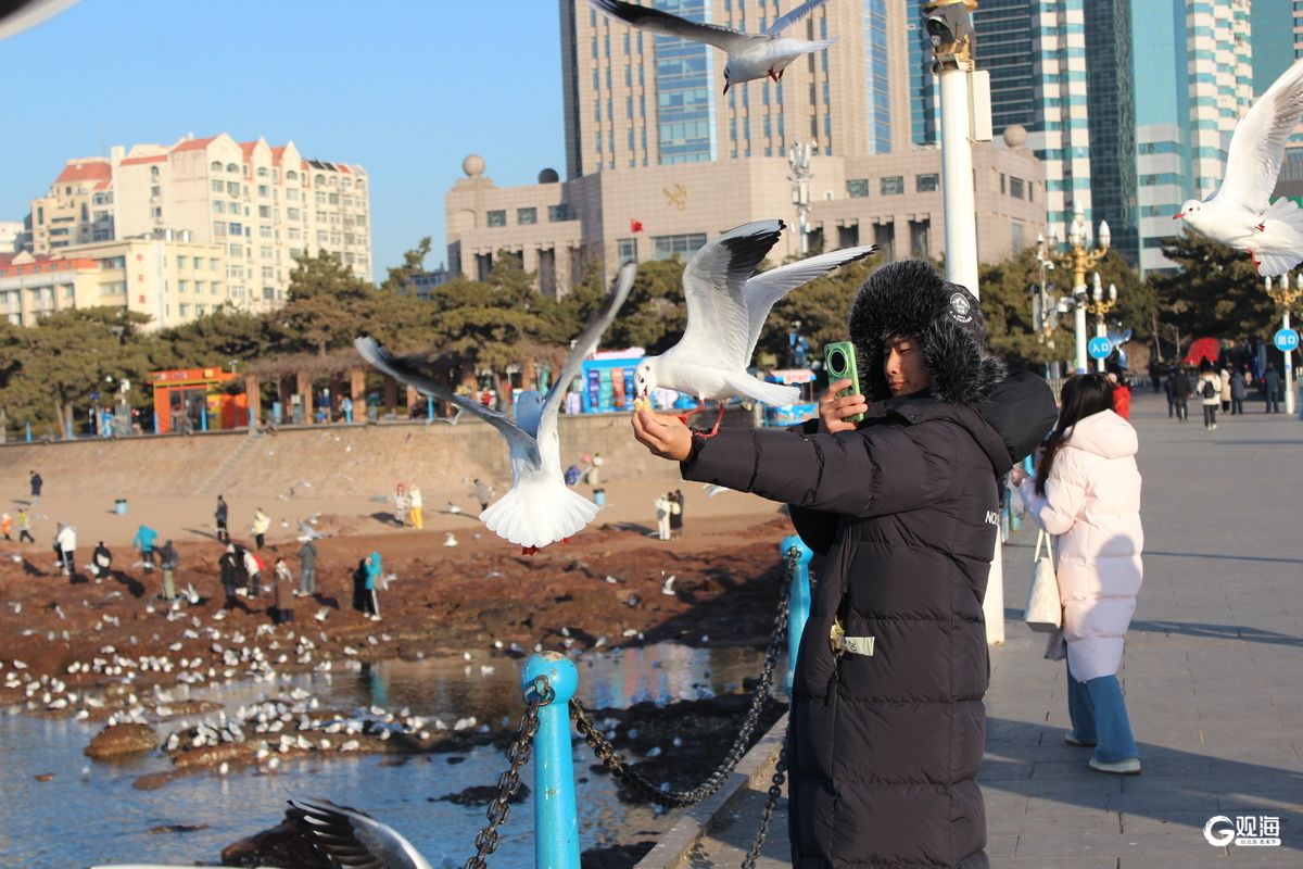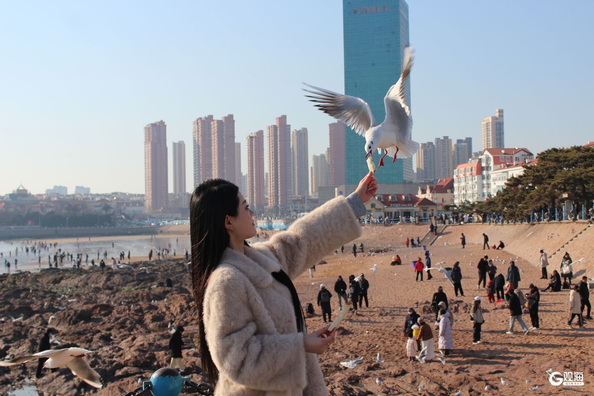 在冬日,数万只海鸥的翩跹聚集,为青岛海岸线绘出最灵动的风景。栈桥畔,得益于持续向好的生态环境与市民游客自觉的文明护鸥行动,这里已成为海鸥安然栖居的“城市客厅”。游人们在此不仅可观赏群鸥掠过浪花的壮阔场面,更能体验与海鸥“零距离”同框的奇妙互动——它们时而轻盈停驻游人身上、时而俯身轻啄掌心的鸥粮,每一帧人与鸥的亲密同框,都成为一幅流淌着暖意的冬日画卷。(青岛日报/观海新闻记者 刘栋 摄影报道)