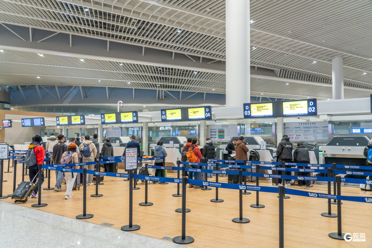 青岛机场出入境边防检查站在节假日出入境的高峰时刻增设通道、设置“绿色通道”等举措,确保口岸安全顺畅。
