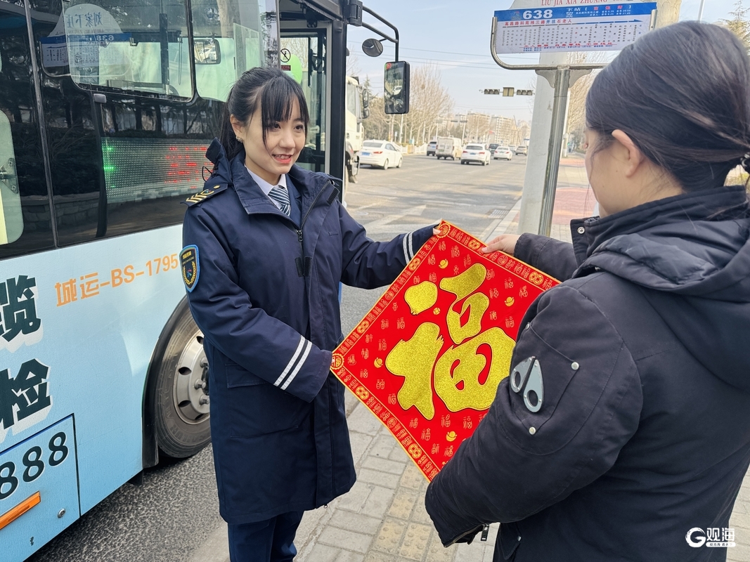 除了氛围感拉满的主题车厢,各场站的暖心服务也同步上线。在刘家下庄公交站,温馨巴士公司工作人员为候车乘客送上新年“福”字,将满满的节日祝福送到市民手中。针对小年过后市民乘车返乡、采购年货、赶大集的出行高峰,温馨巴士公司提前做好运营保障,全面加强运营车辆安全检查,持续提升服务质量。