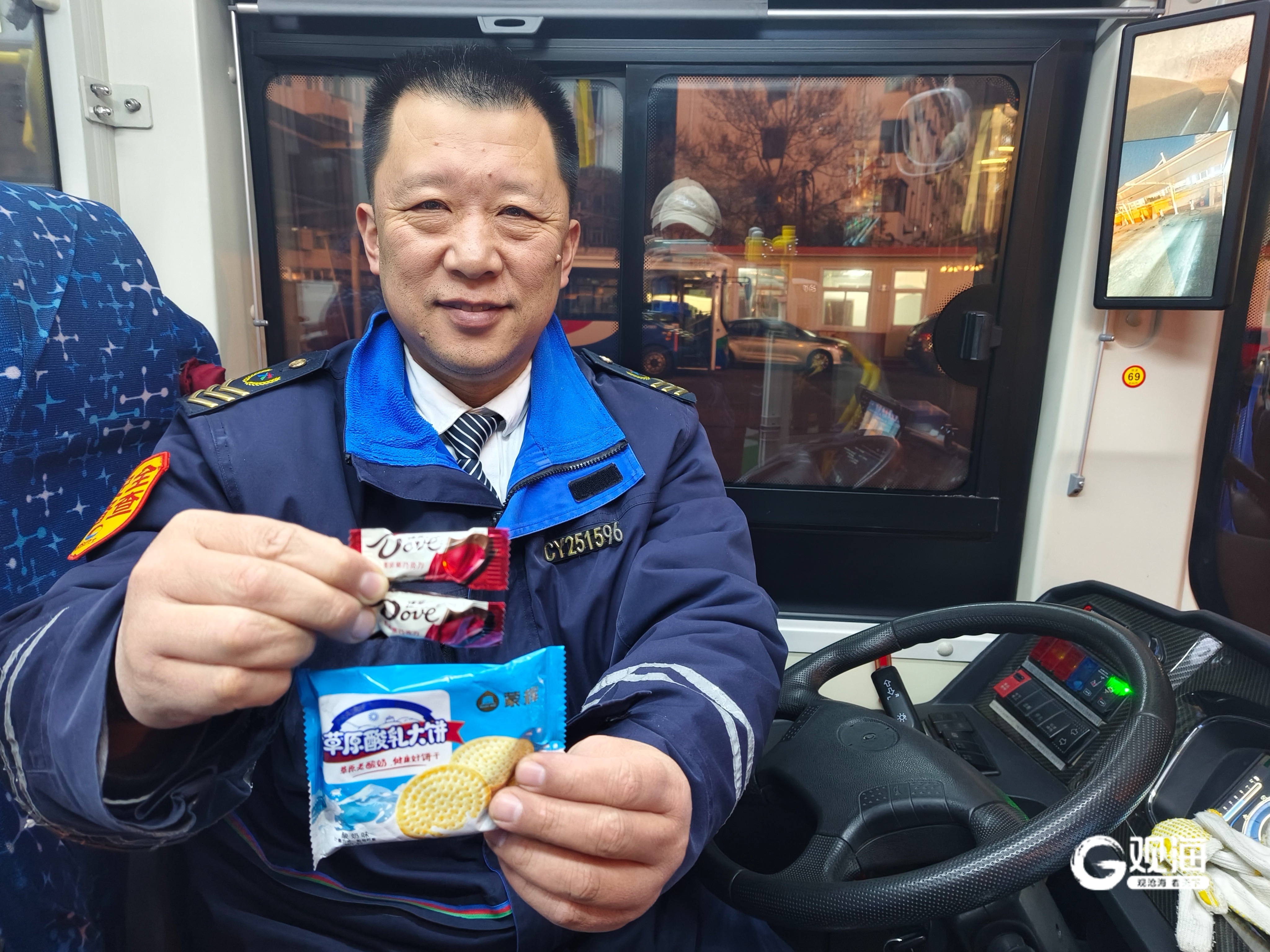车辆运行途中,柳斌的关怀并未停止。当车辆临近老人目的地——崂山党校站点时,他提前通过车厢后视镜与老人确认下车地点,并细心叮嘱:“车停稳后再起身,不要着急站起来,避免危险。”这份贯穿行程、始终如一的主动安全守护,深深触动了老人。她甚至在途中关切地询问柳斌是否吃过晚饭,执意想将自己携带的糖和饼干分享给这位好心的驾驶员,被柳斌婉言谢绝。