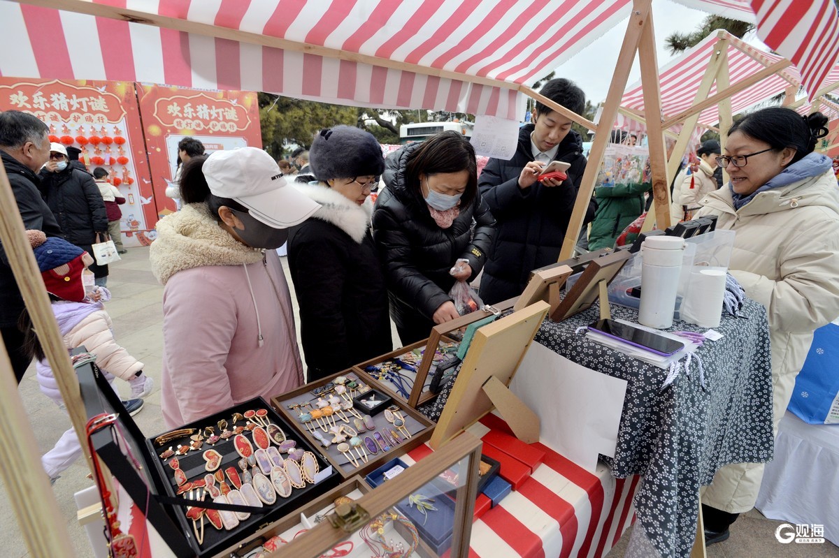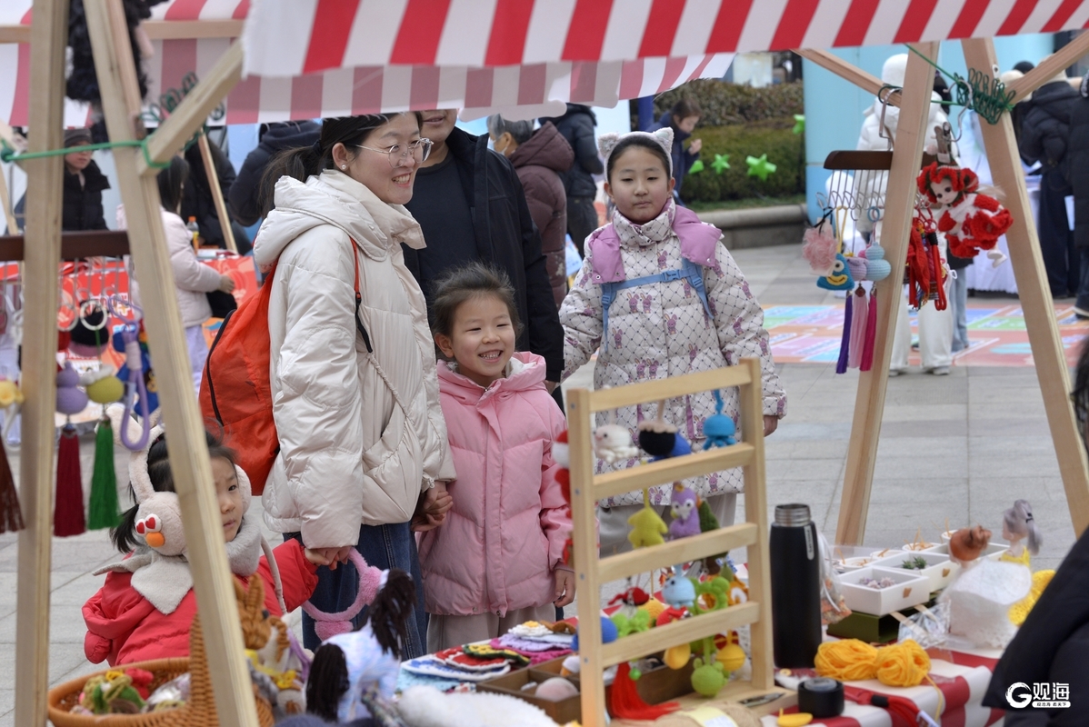 鸥鸣阵阵,市集熙攘。走进“鸥伴团圆”市集,现场30个特色摊位热闹非凡,海滨食品海产品藏着海的馈赠,崂山热可乐暖身暖心,安娜别墅咖啡氤氲着浪漫滋味。非遗公益推介区里,掐丝珐琅、扎染、钩编、布艺缝制等传统技艺在指尖流转。市民游客争相领取新春福礼,把福字春联、中药香珠、宋锦首饰等礼品与美好祝福带回家。海底世界、康辉旅行社、海诺繁华序等文旅和地产展位,也尽数展现着青岛的山海之美与旅游魅力。