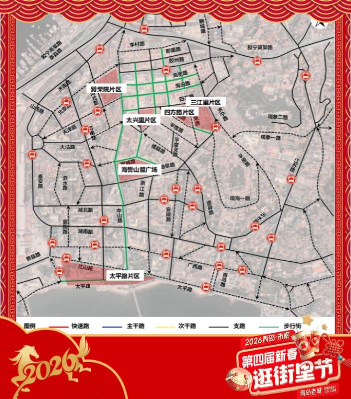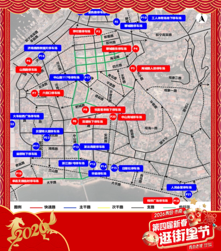 青岛日报社/观海新闻2月10日讯 到老城,过大年。今日,第四届新春逛街里节正式启幕,最全出行交通攻略来了。29处停车场4500+泊位实时查询、498个路内泊位灵活补给、地铁公交无缝衔接,一篇搞定出行难题,助您轻松直达年味十足的欢乐现场。