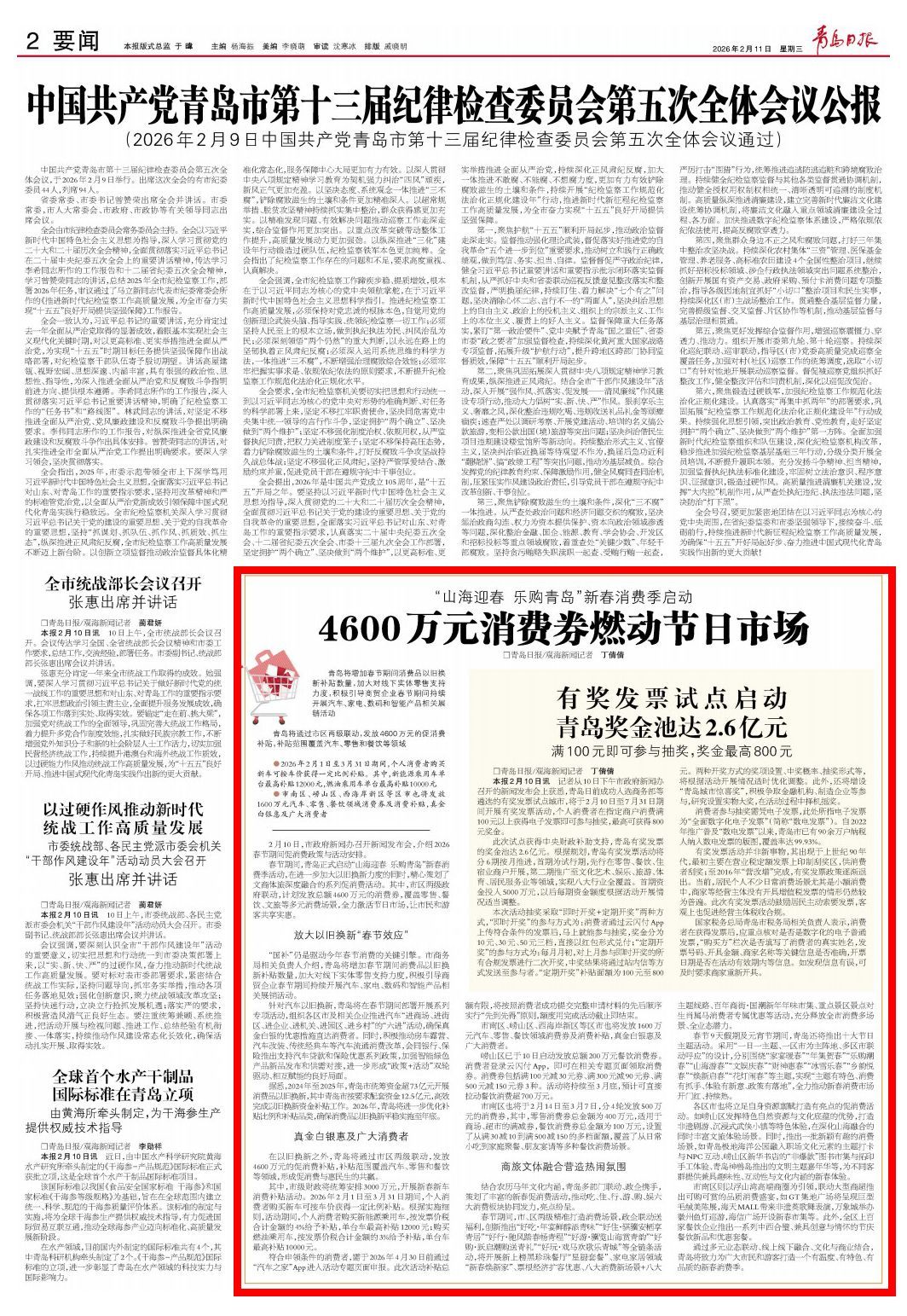 春节期间,青岛正式启动“山海迎春 乐购青岛”新春消费季活动,在进一步加大以旧换新力度的同时,精心策划了文商体旅深度融合的系列促消费活动。其中,市区两级政府联动,计划发放总额4600万元的消费券,覆盖零售、餐饮、文旅等多元消费场景,全力激活节日市场,让市民和游客共享实惠。