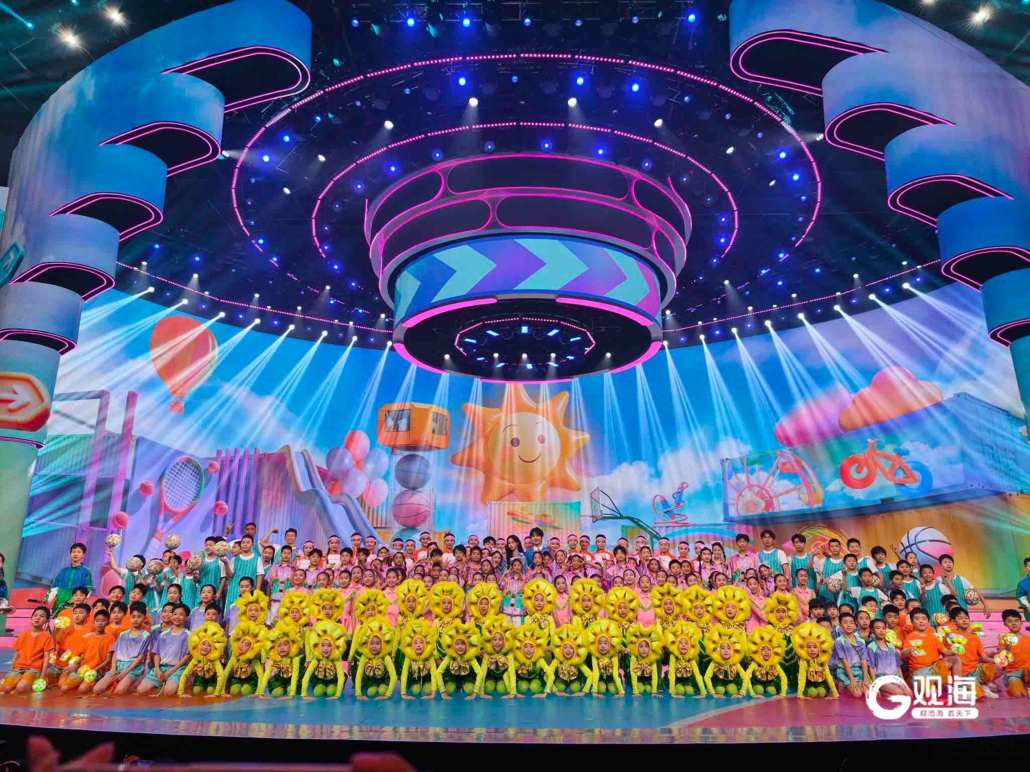 “健康动起来”的间奏部分,是整场舞蹈的“心跳加速器”。“有4个8拍的间奏,与常规舞蹈不同的是,需要全场100名孩子同时起舞,动作的整齐度和节奏感直接决定了整个节目的流畅性。”徐丽丽说。
