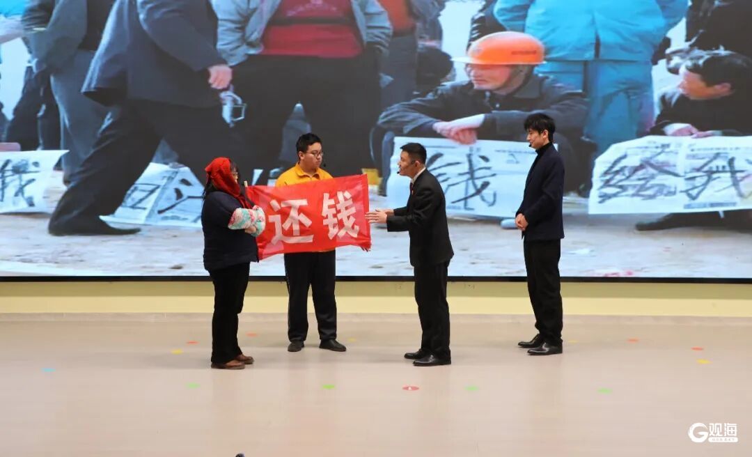 此次案例讲评会分为“胸怀国之大者”“心系民生小事”两个篇章,精选10个讲评案例,演绎形式有单人讲述,双人讲述及情景剧。第一篇章“胸怀国之大者”中,5个案例精彩演绎了在优化法治化营商环境、服务平安建设、奋力执行攻坚、助推依法行政、参与社会治理等不同领域的办案故事,充分展现了胶州法院人始终与法治进程同向、与时代脉搏同频、与城市发展同步,为上合示范区高质量发展提供扎实司法保障的责任与担当。第一篇章结束后,胶州法院干警倾情演唱《法徽下的无悔之梦》,歌声真挚激昂,生动诠释了法院干警对法治事业的赤诚热爱与对初心使命的执着坚守,传递出新时代法院人的责任与情怀。第二篇“心系民生小事”聚焦群众急难愁盼,5个案例从婚姻家事审判、倾力化解矛盾纠纷、守护民生权益等多个视角,讲述了胶州法院人坚持以人民为中心的发展思想,将司法温度融入个案裁判,用实干担当书写司法为民时代答卷的生动实践。活动尾声,青岛中院普法文化宣传员、胶州市人大代表赵青老师为大家演唱了歌曲《伟业》。恢宏的旋律、真挚的歌声,带领全体干警回望并肩奋斗的岁月,致敬坚守初心的法治榜样,进一步凝聚起干事创业的强大合力。