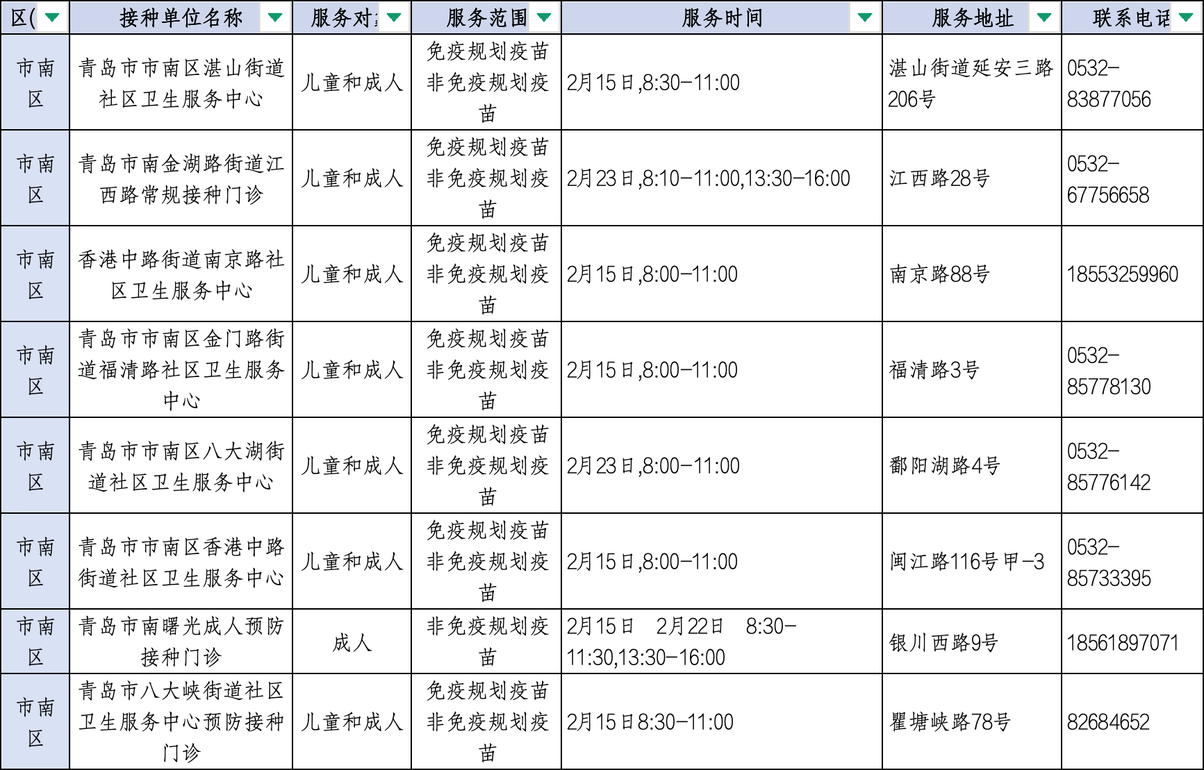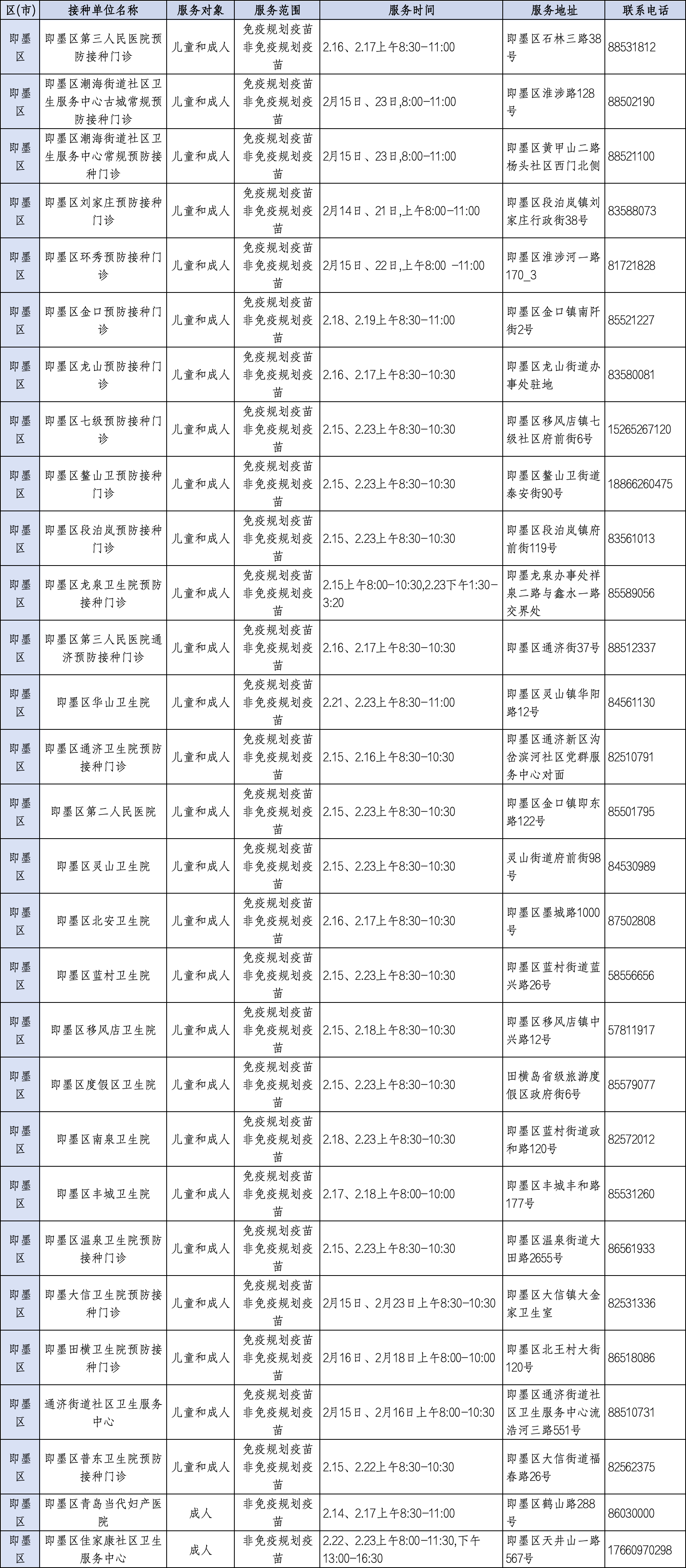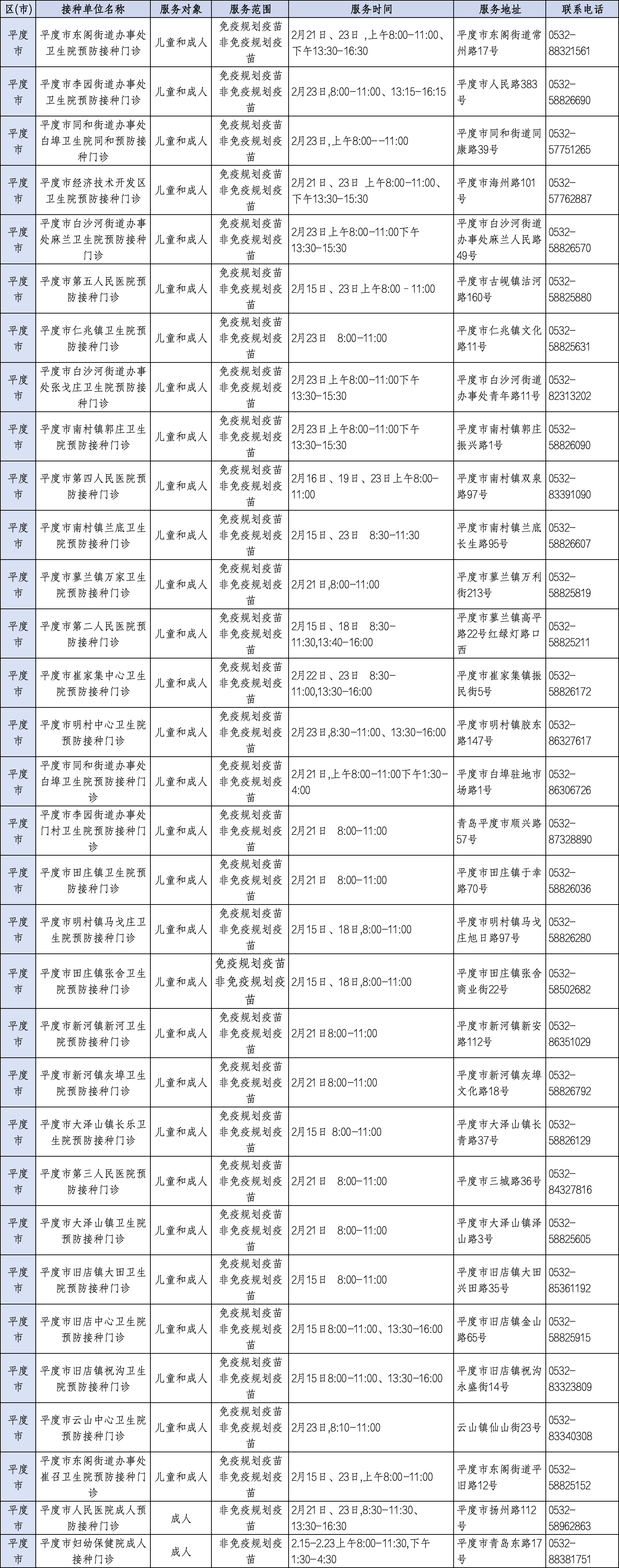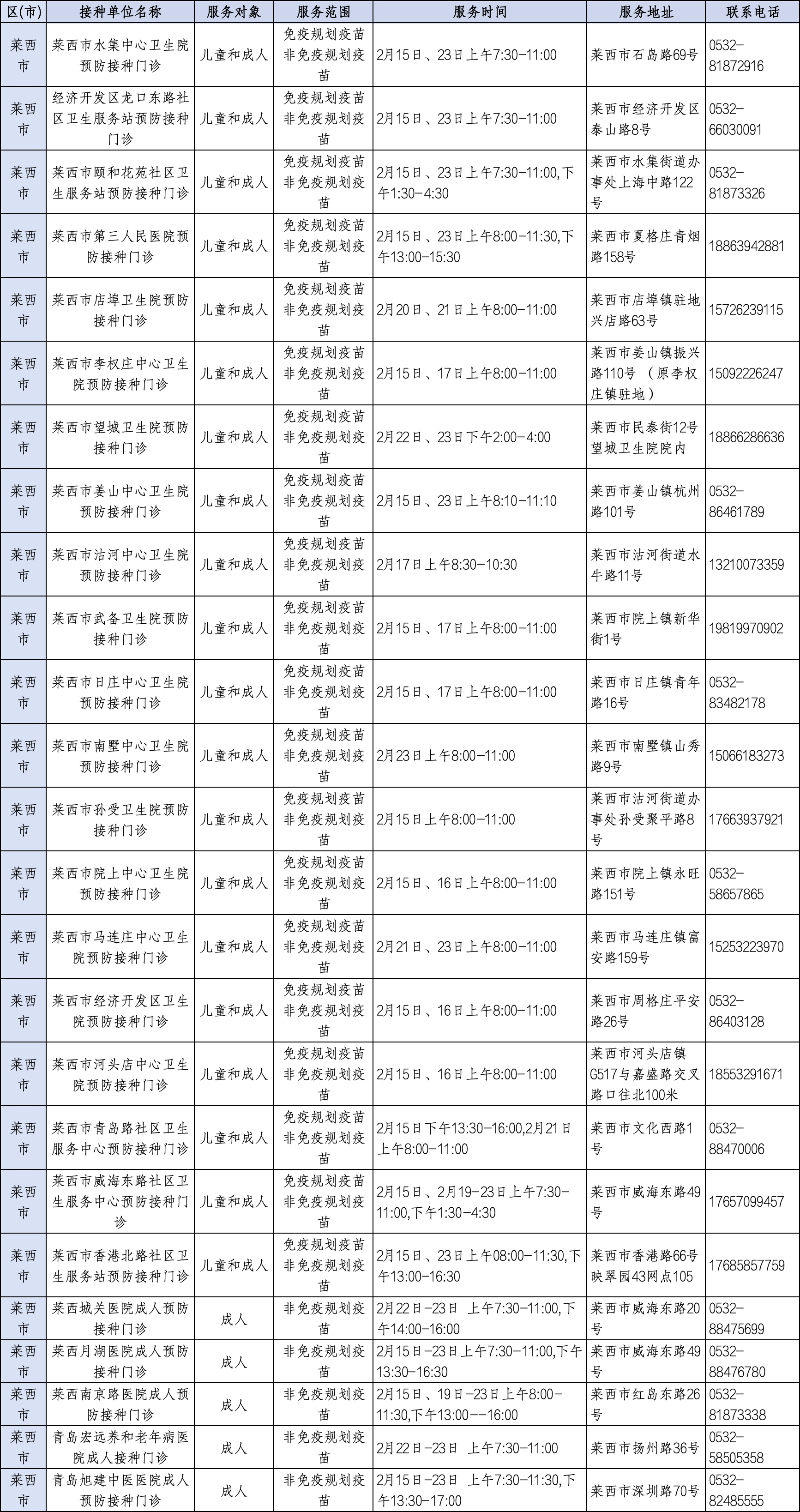 青岛日报社/观海新闻2月11日讯 为满足广大市民春节假期疫苗接种需求,守护大家平安健康过佳节,近日,青岛市疾控中心将青岛春节期间预防接种门诊开诊信息公示如下,有接种需求的市民朋友可就近选择门诊接种。