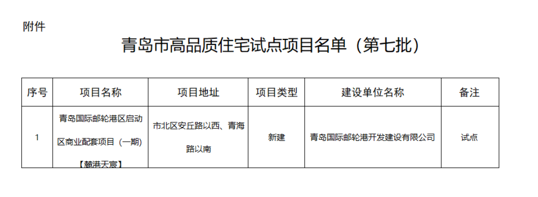 青岛国际邮轮港区启动区商业配套项目(一期)【麓港天宸】项目位于市北区安丘路以西、青海路以南,为新建住宅项目,由青岛国际邮轮港开发建设有限公司负责建设。