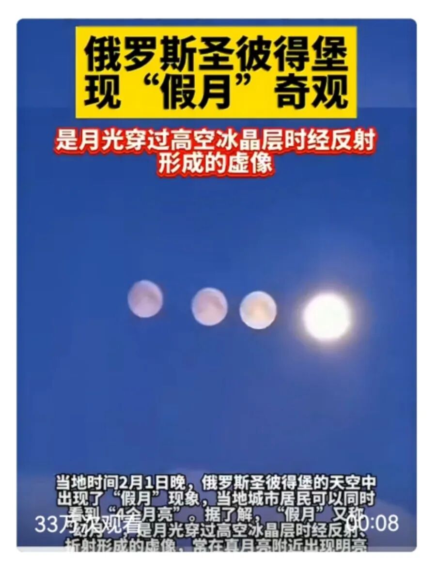 最近,“俄罗斯圣彼得堡上空出现4个月亮”的话题引发网友关注,有人将其称之为“幻月”“假月”现象。