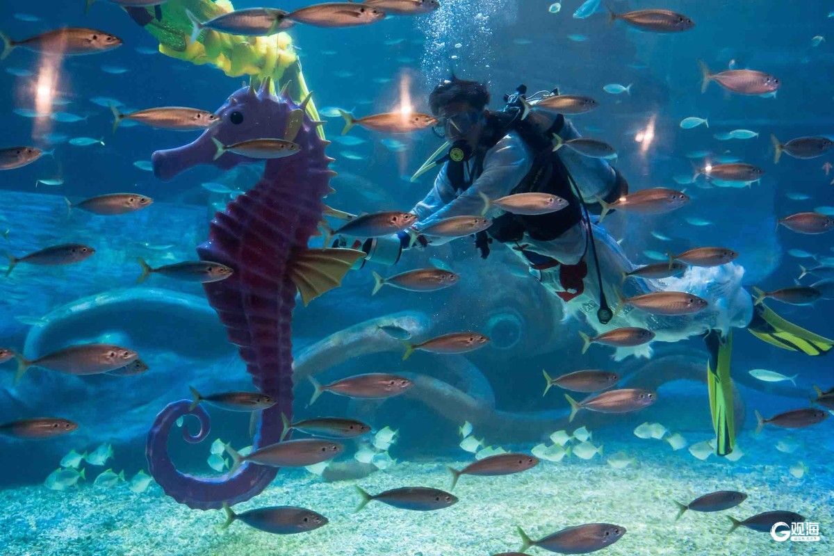 今年春节,青岛极地海洋公园首创的“水下赛马”和贺岁“水下舞狮”表演成为最大亮点。为将陆上节庆活动巧妙移植水下,保育员团队自1月初便投入训练,努力克服水下阻力,操控8公斤重的狮头完成举狮、摆头等水下高难度动作,并操控1.5米高的海马道具完成水下趣味竞技表演。演出时,“狮子”与“海马”在鱼群环绕间穿梭,呈现出一场趣味十足的水下新春大秀,寓意新的一年“如鱼得水、马到成功”,吸引众多游客驻足拍摄。“从来没想过能在水下看‘赛马’和舞狮,特别新奇,孩子看得眼睛都不眨,年味十足!”游客张女士说。