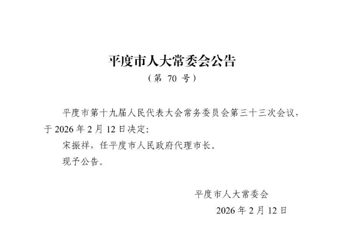 宋振祥任平度市人民政府代理市长