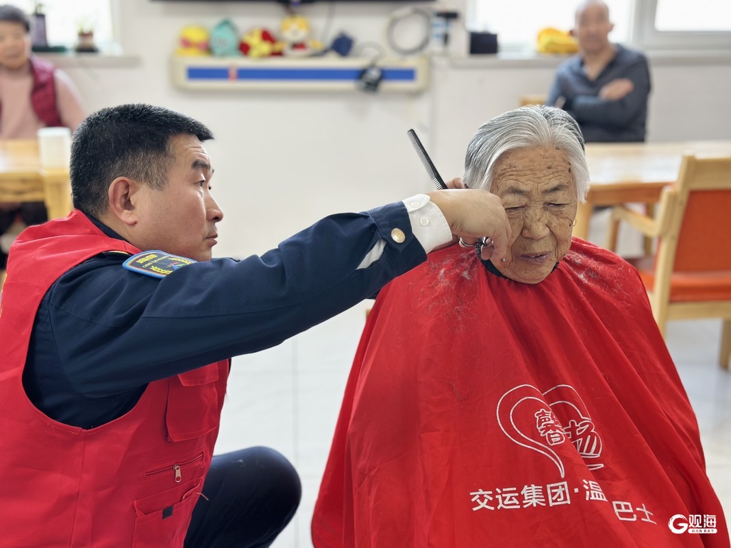 青岛日报社/观海新闻2月12日讯 “剪完头发精神多了!”2月12日,青岛崂山区王哥庄街道万林居家社区养老服务中心内暖意融融,刚理完发的刘大妈对着镜子竖起大拇指,脸上的笑容满是欢喜。新春佳节将至,城运控股交运温馨巴士“馨飞扬”志愿者们如约而至,以爱心义剪、除尘保洁、暖心陪伴的“组合服务”,让行动不便的老人们从“头”到“心”焕发新貌,在清爽舒心的氛围中静待新春。
