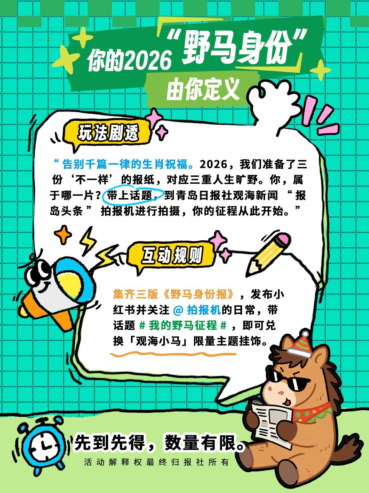 如果你在青岛的景区街头偶遇这份《野马身份报》,不妨行动起来,参与到这场年轻人的新年互动中来。