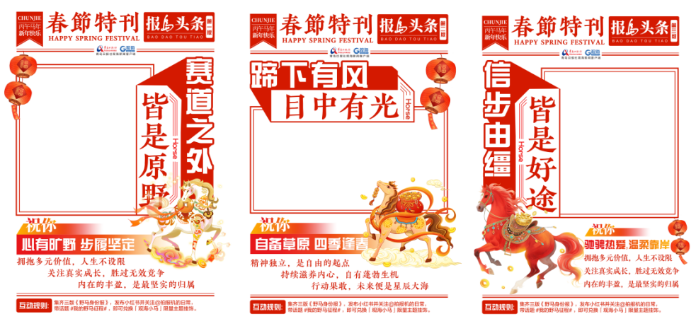 报纸上,不再是千篇一律的“马到成功”,取而代之的是三句又飒又自由的话:“赛道之外,皆是原野”“蹄下有风,目中有光”“信步由缰,皆是好途”。