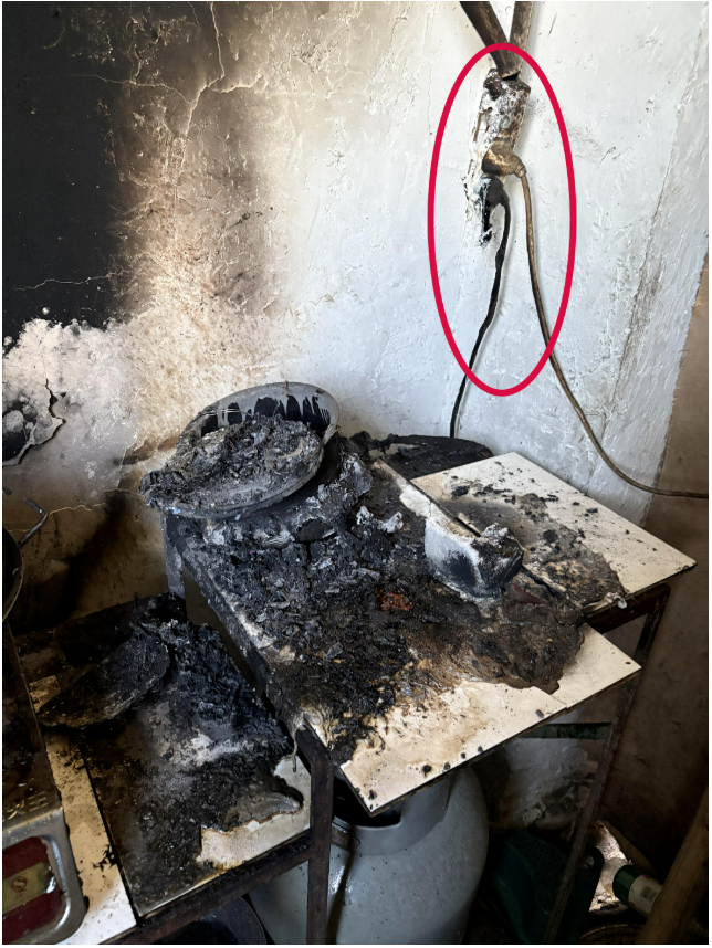 被捆扎的电线外皮已烧焦。图源:南京消防