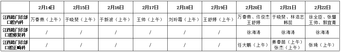 门诊时间:2月19日,8:00-12:00,13:30-17:00