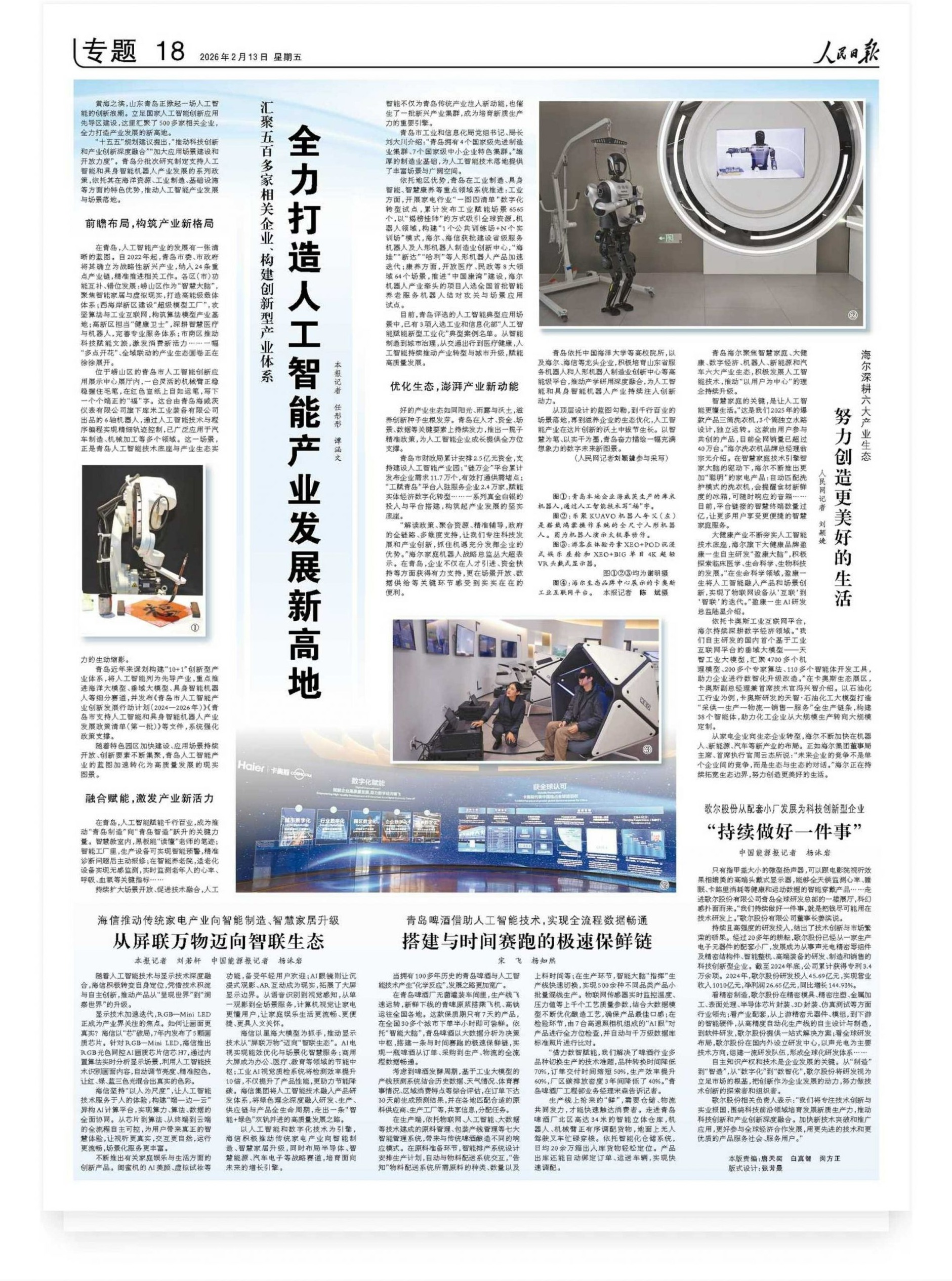 “解读政策、聚合资源、精准辅导,政府的全链路、多维度支持,让我们专注科技发展和产业创新,抓住机遇充分发挥企业的优势。”海尔家庭机器人战略总监丛大超表示。在青岛,企业不仅在人才引进、资金扶持等方面获得有力支持,更在场景开放、数据供给等关键环节感受到实实在在的便利。