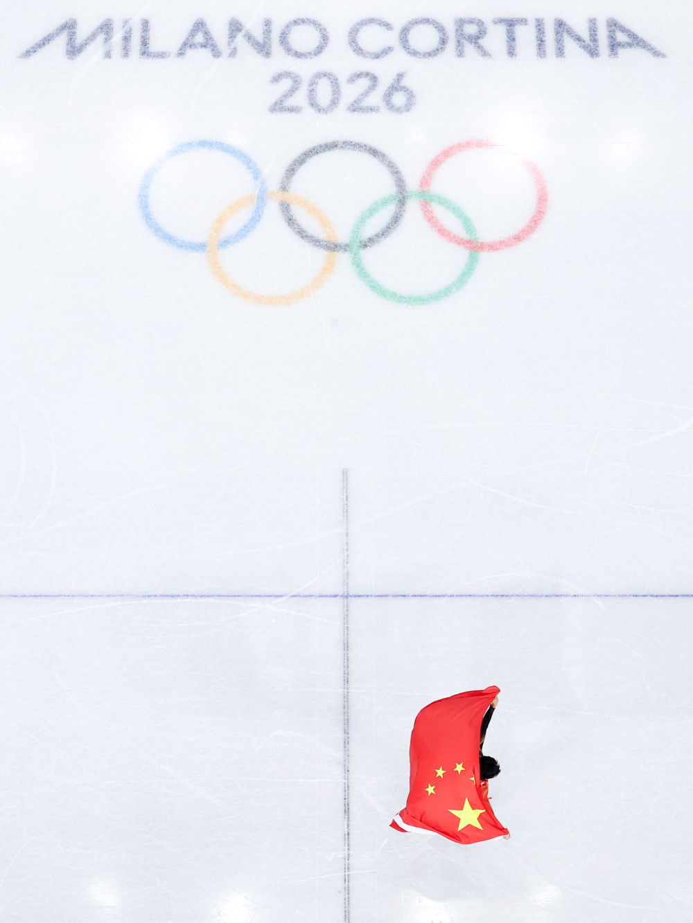短暂庆祝后,孙龙身披国旗在冰场上滑行。米兰的深夜,观众席上仍有许多挥舞着五星红旗的观众在为他欢呼。