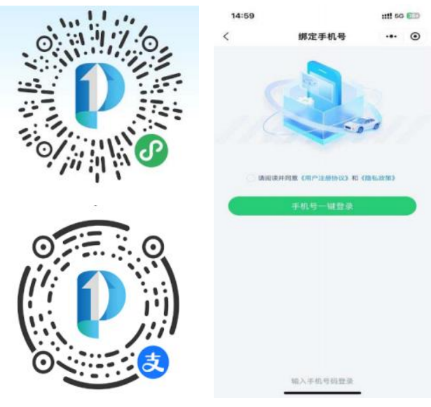 方法二:扫描小程序码,绑定手机号一键登录。(微信和支付宝)