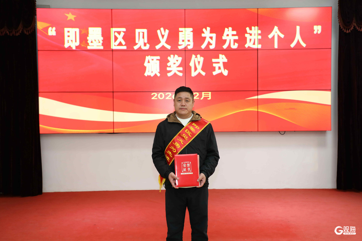 青岛日报社/观海新闻2月14日讯 “你在关键时刻的抉择和行动,朴实无华,却闪耀着人性最动人的光芒。你的英勇善举,让即墨这片热土上正气与温度有了更加生动的体现……”